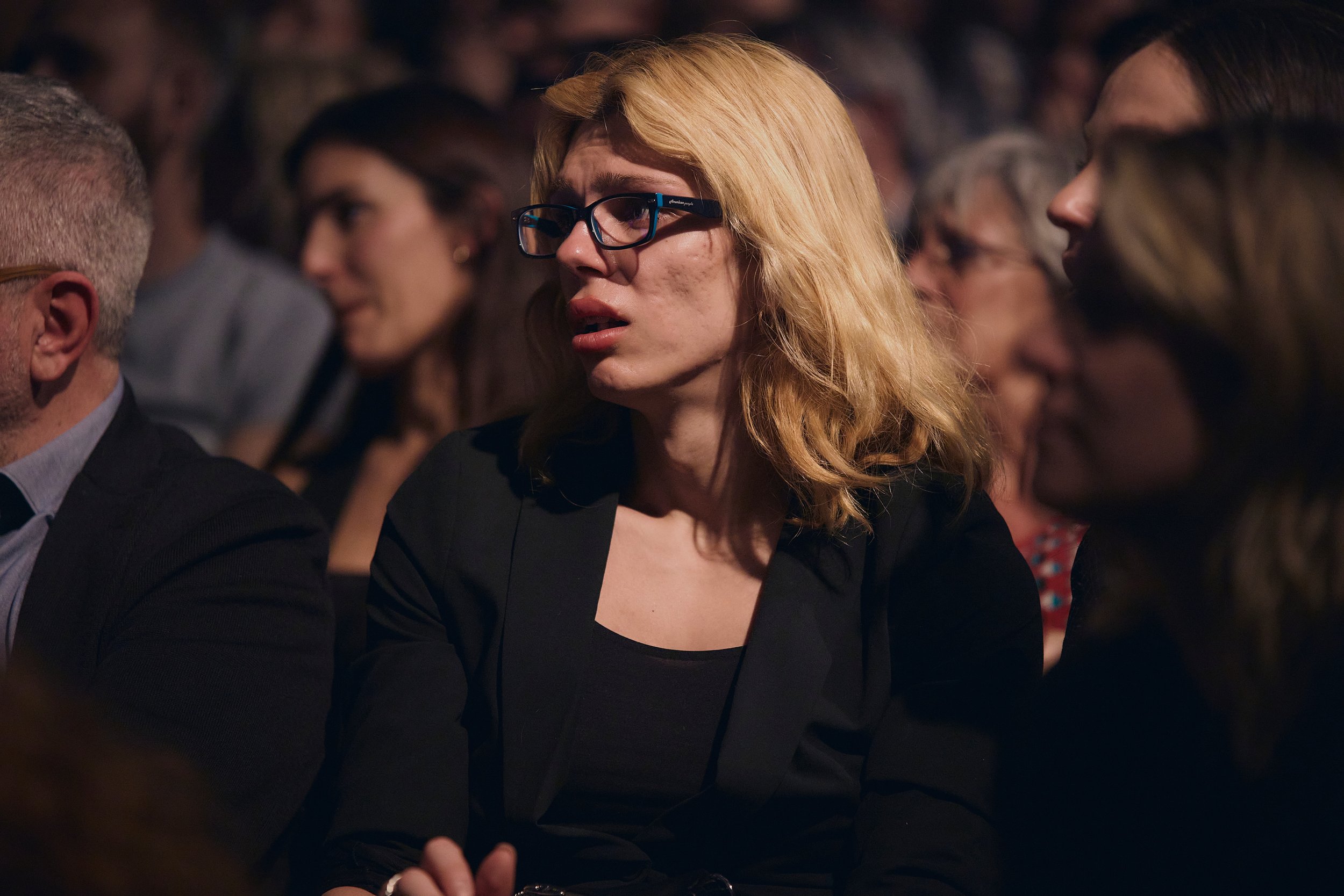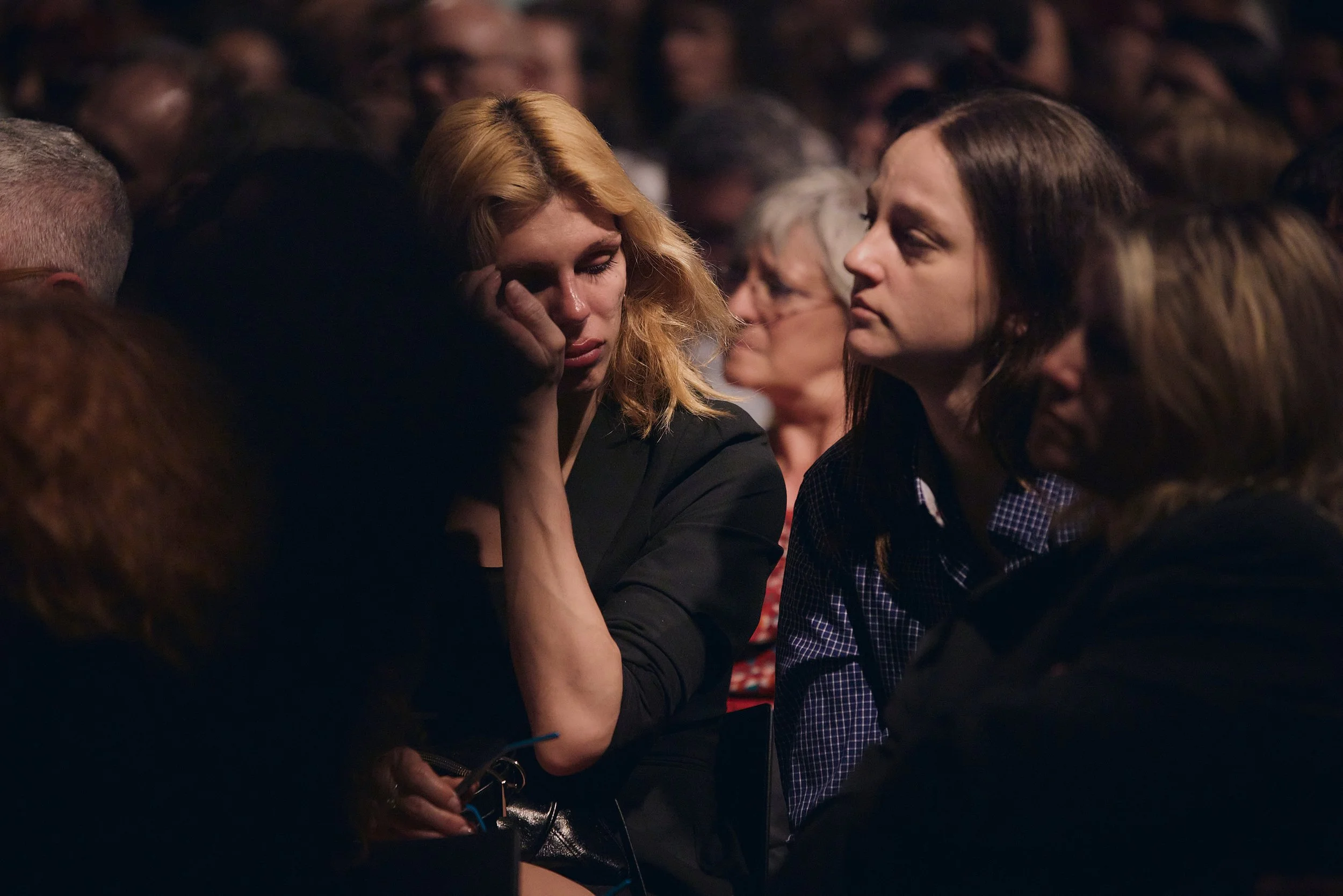 But his attitude then and last night was different. The artist’s serious expression in 2021 was replaced with one that reflected tenderness, and he warned the audience of this —something unusual in performance art, where one usually lets anything happen— at the start of the evening: “I’m going to ask you to be gentle with her. With Manolo, someone shouted at him, ‘son of a bitch.’” The woman, always lowering her head to avoid the 400 eyes fixed on her, wiping away a tear now and then with her trembling free hand, never said a word. But a text of hers, printed on the program leaflet, was enough to understand her story: