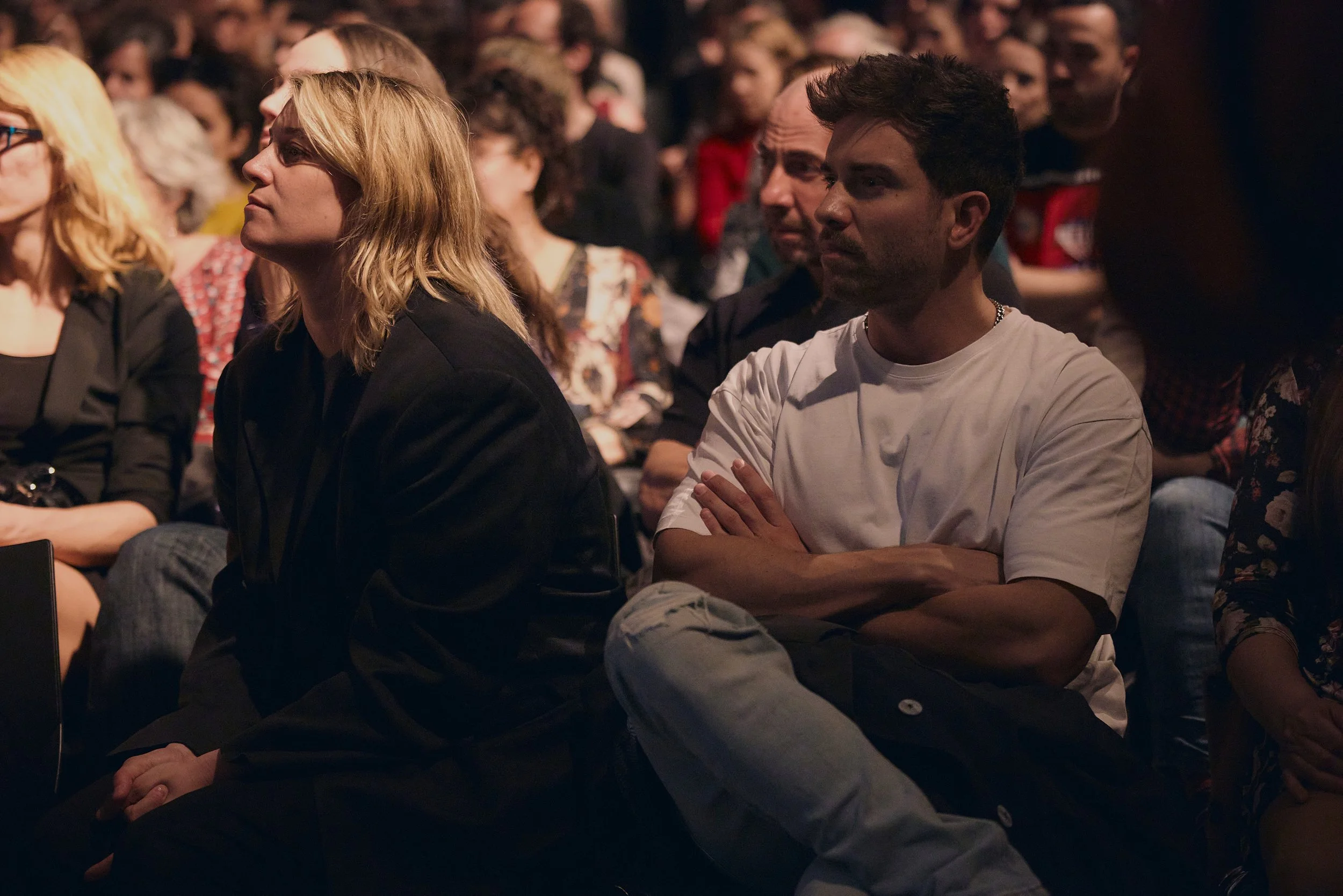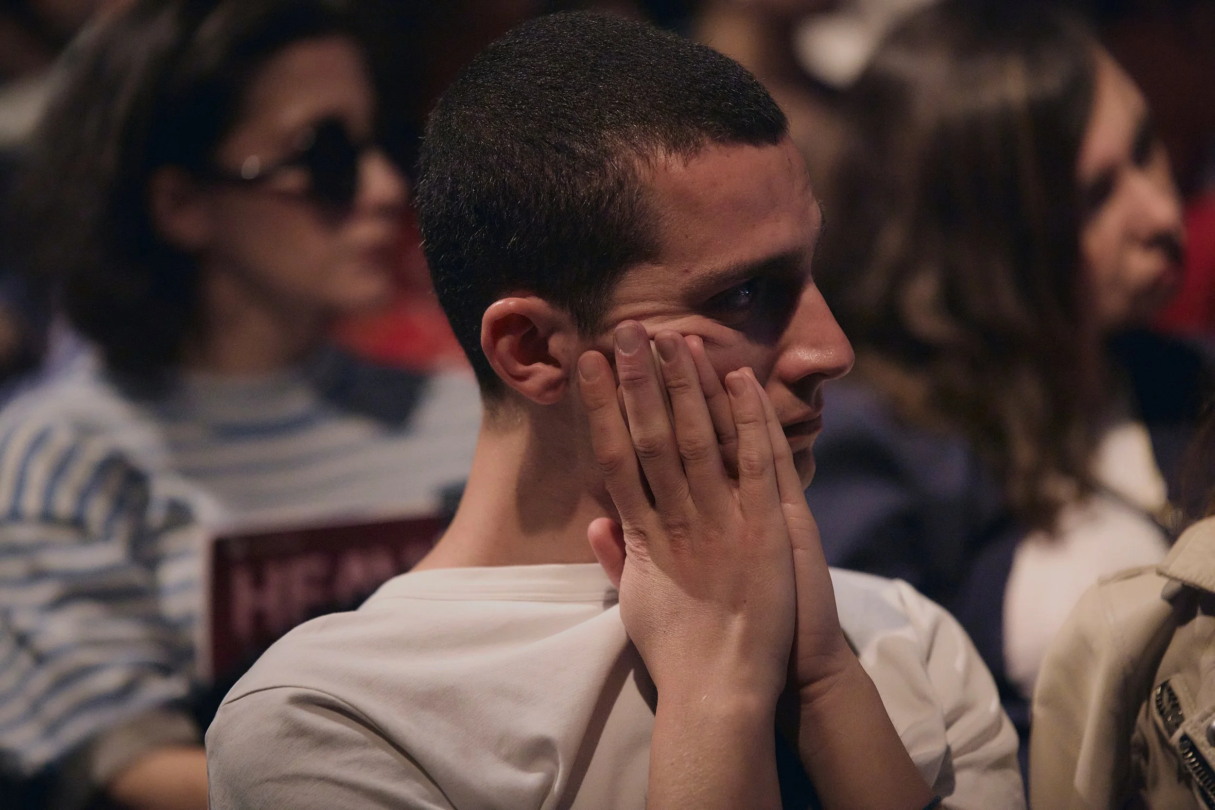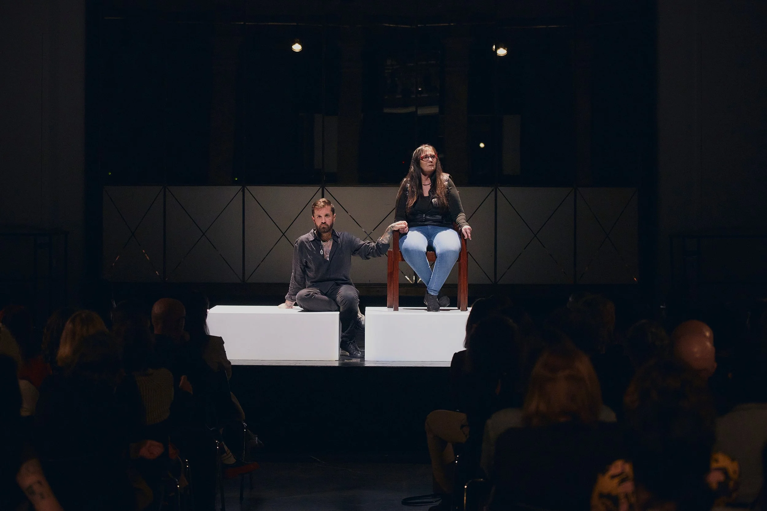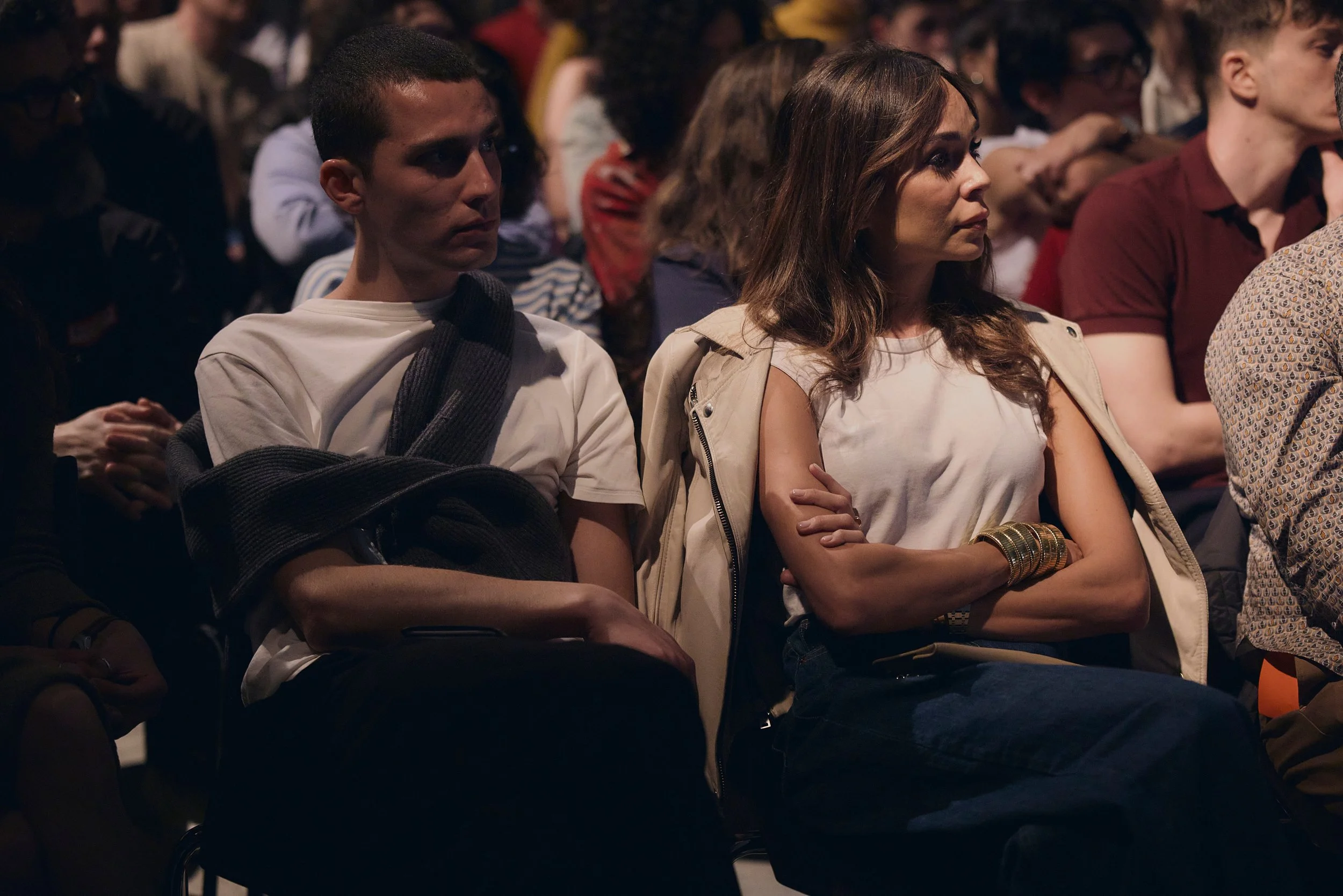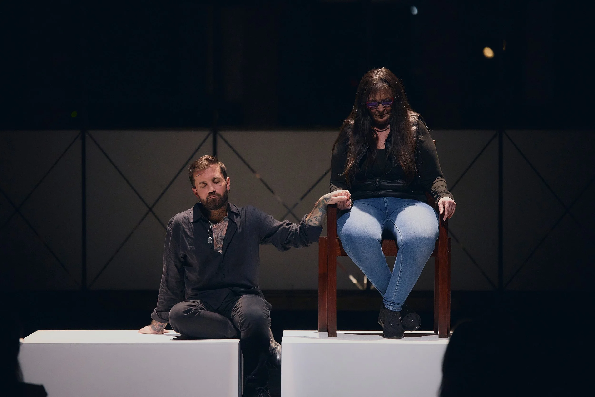 The first physical contact Isabel Gómez Aranda had with her son came when she leaned on his hands to climb onto the platform. Then they shook hands. And that’s how they stayed for an hour —first standing, later sitting— exchanging occasional glances, whispers, a faint laugh. Sixty minutes in which, without seeking anything to happen, nothing happened. Hundreds of people holding the raw, silent vulnerability of two strangers. The nothingness of a conceptual art piece, bound to life and untouched, capable of stirring emotions among the attendees, who broke the silence by blowing their noses.