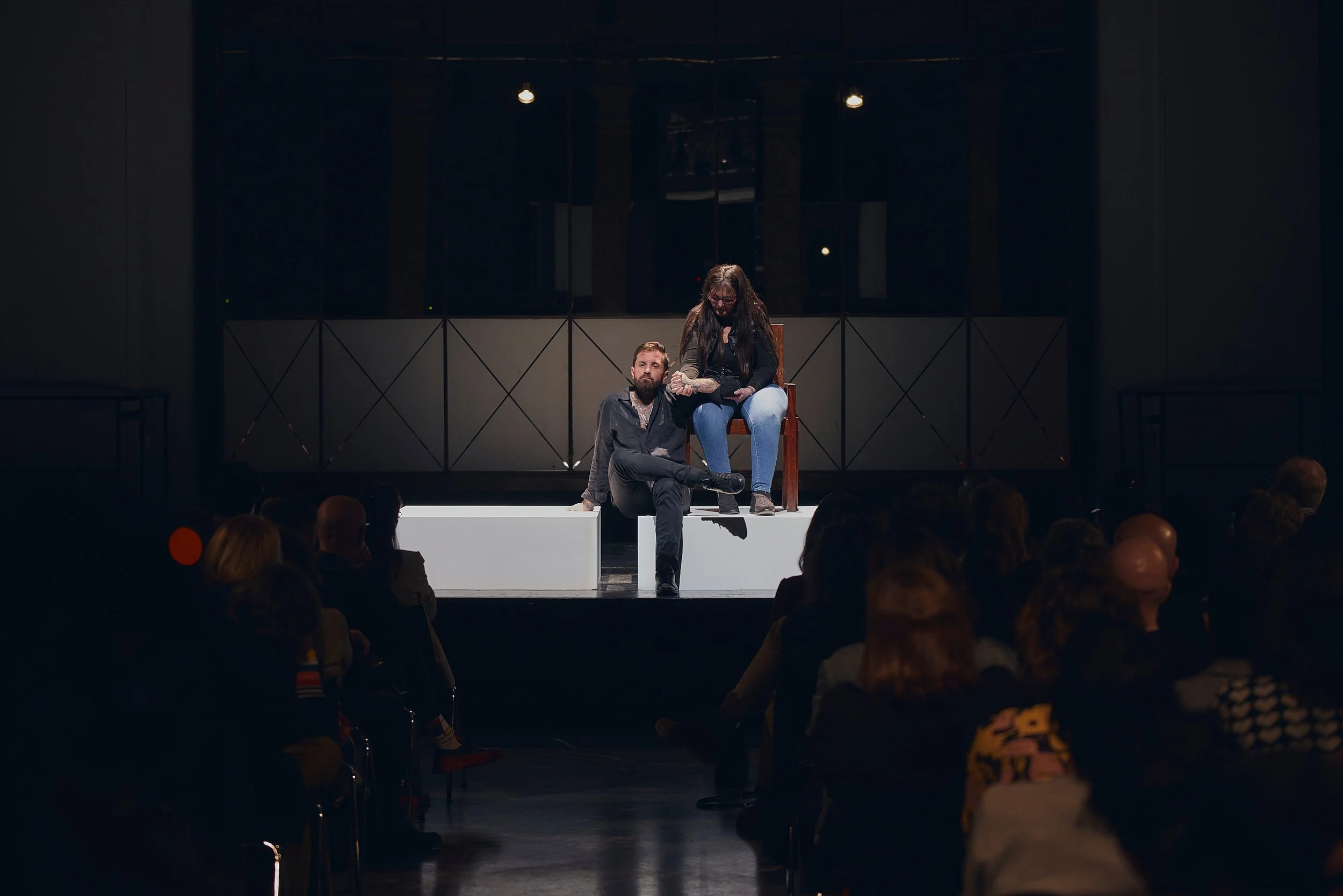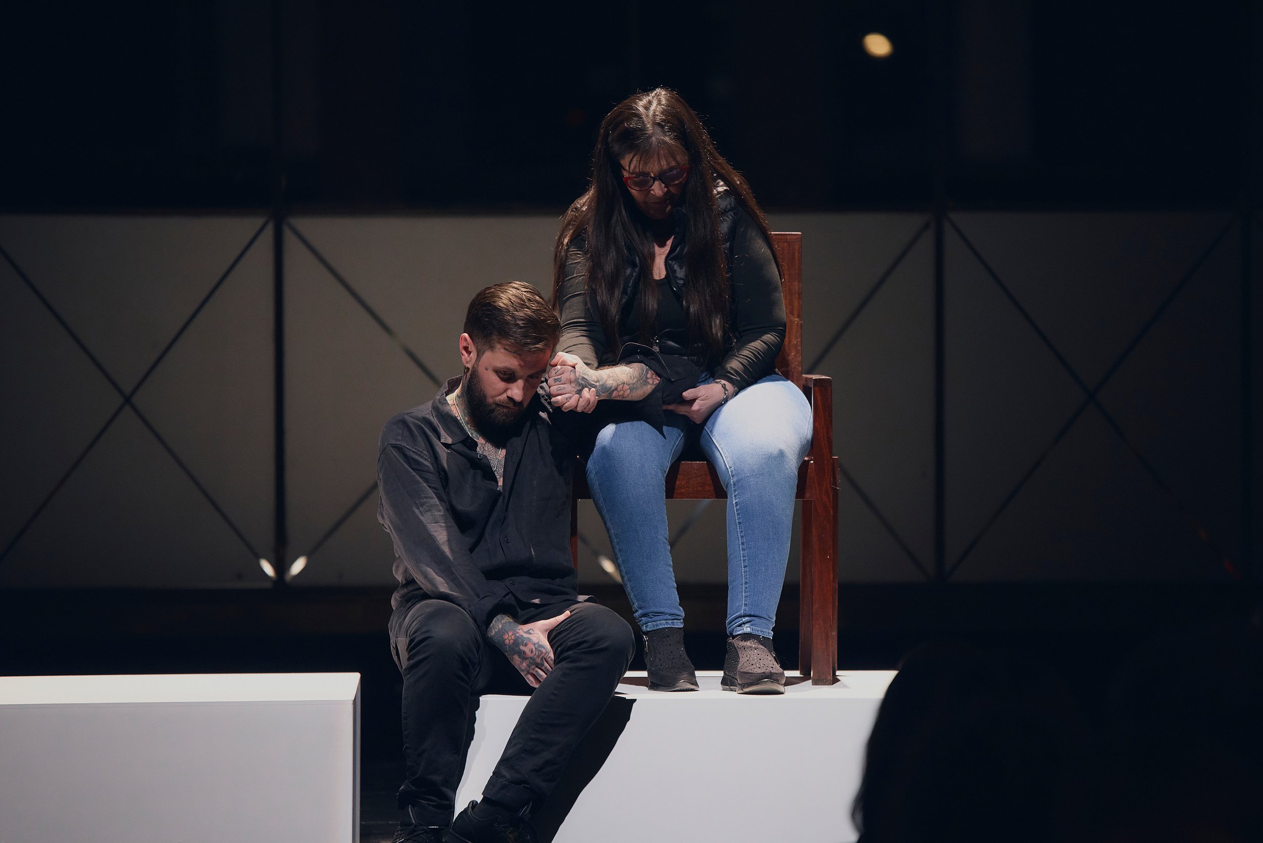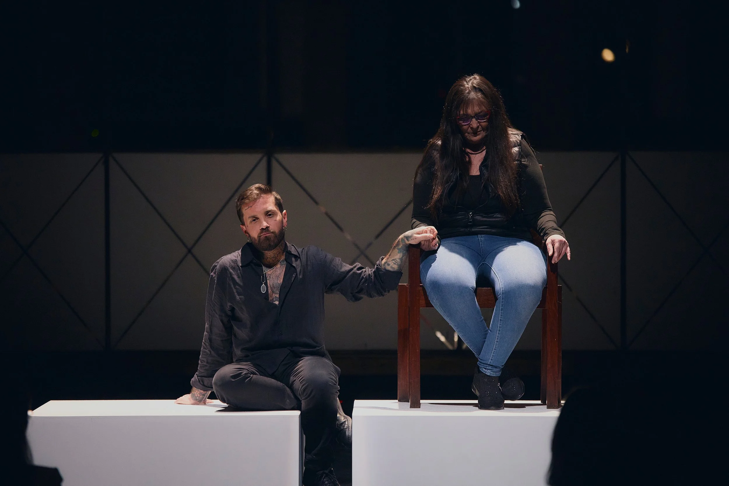 “The performance “Mother and Son” by Abel Azcona at the Círculo de Bellas Artes is, at the same time, an act of resistance and healing that exposes the structural violence of the patriarchal system, not only through the figure of the mother but also through that of the son. This biographical action is not limited to a personal reunion between Isabel and Abel; it is a space of confrontation where memory, pain, and personal history become tools of visibility and denunciation. Through this work, Azcona and his mother embody a story of violence that traverses their bodies and lived experiences. Isabel’s biography—marked by drugs, prostitution, and gender-based violence—is a reflection of a structure that subjugates and precarizes the lives of so many women, turned into objects of a system that is not only patriarchal but also capitalist. Abel’s abandonment is not merely an individual decision, but the consequence of a system that casts women into extreme vulnerability. On the other hand, the artist’s story, marked by childhood abandonment and abuse, shows how these same forms of violence also affect childhood and male bodies that have grown up in the fragility of a society where toxic masculinity is the norm. From a feminist perspective and from my point of view as a curator, *Mother and Son* is not just a performance about a reunion, but an action that confronts the oppression of vulnerable bodies. Azcona, whose work has explored the body as a territory of memory and resistance, inserts himself into a genealogy of performance art where his artistic mothers—Marina Abramović, Orlan, Yoko Ono—have made art a field of dispute and reconstruction. Here, the mother is not a symbolic figure, but a real presence—a body marked by violence—that meets her son in an artistic action that challenges the structures that have separated them.”