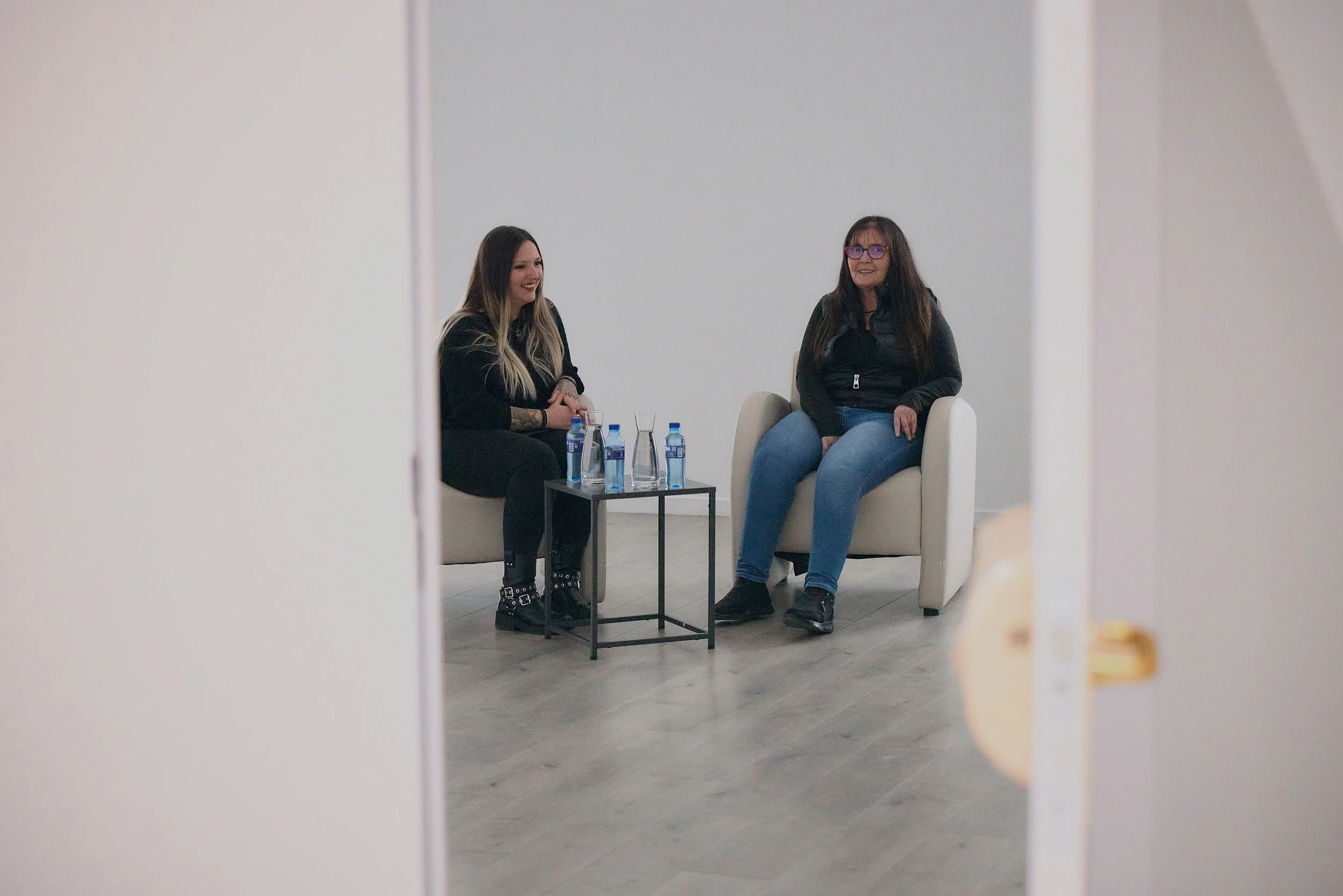It was his mother who contacted him in October 2023. They each took a DNA test at a distance. Positive. From then until today, Azcona developed what he defines as a “processual” work in which both took steps toward reunion. “She wanted to see me right away, but I needed time,” the artist explained. They exchanged messages —“every day she sends me one of those little Tweety cartoons saying good morning,” he said, drawing laughter—, and last summer he invited her to write her testimony on paper. Later, he placed her under a spotlight at the Contemporary Art Center of Málaga to film her as she spoke about her origins, her hometown, and the beginning of her story. That was when Azcona’s image of her began to change. “I discovered that our stories are similar, that they repeat. And she is very happy to come here and do this.”
