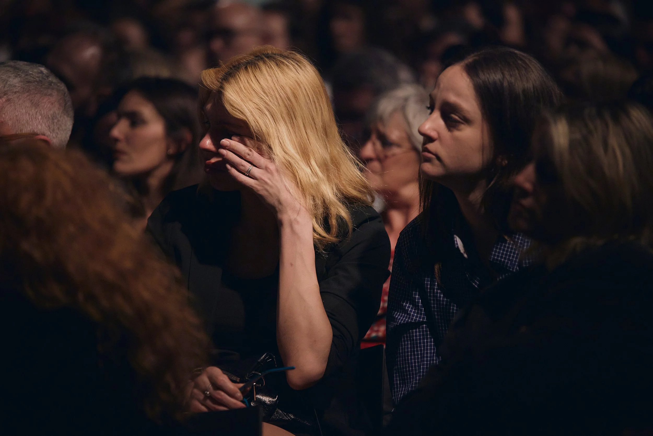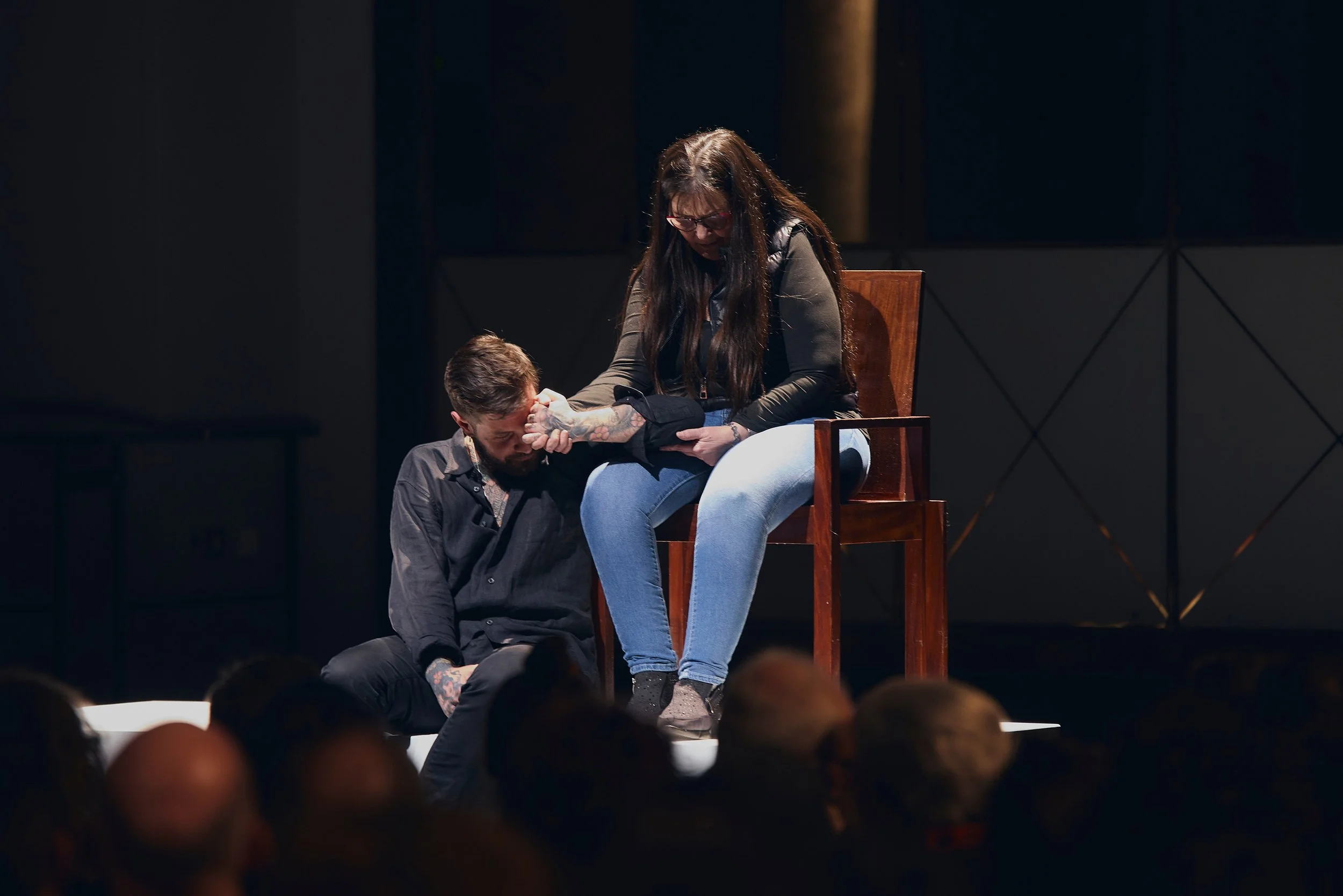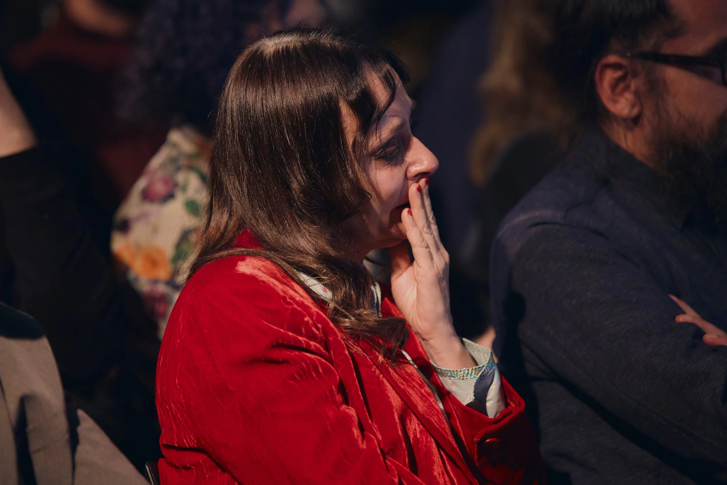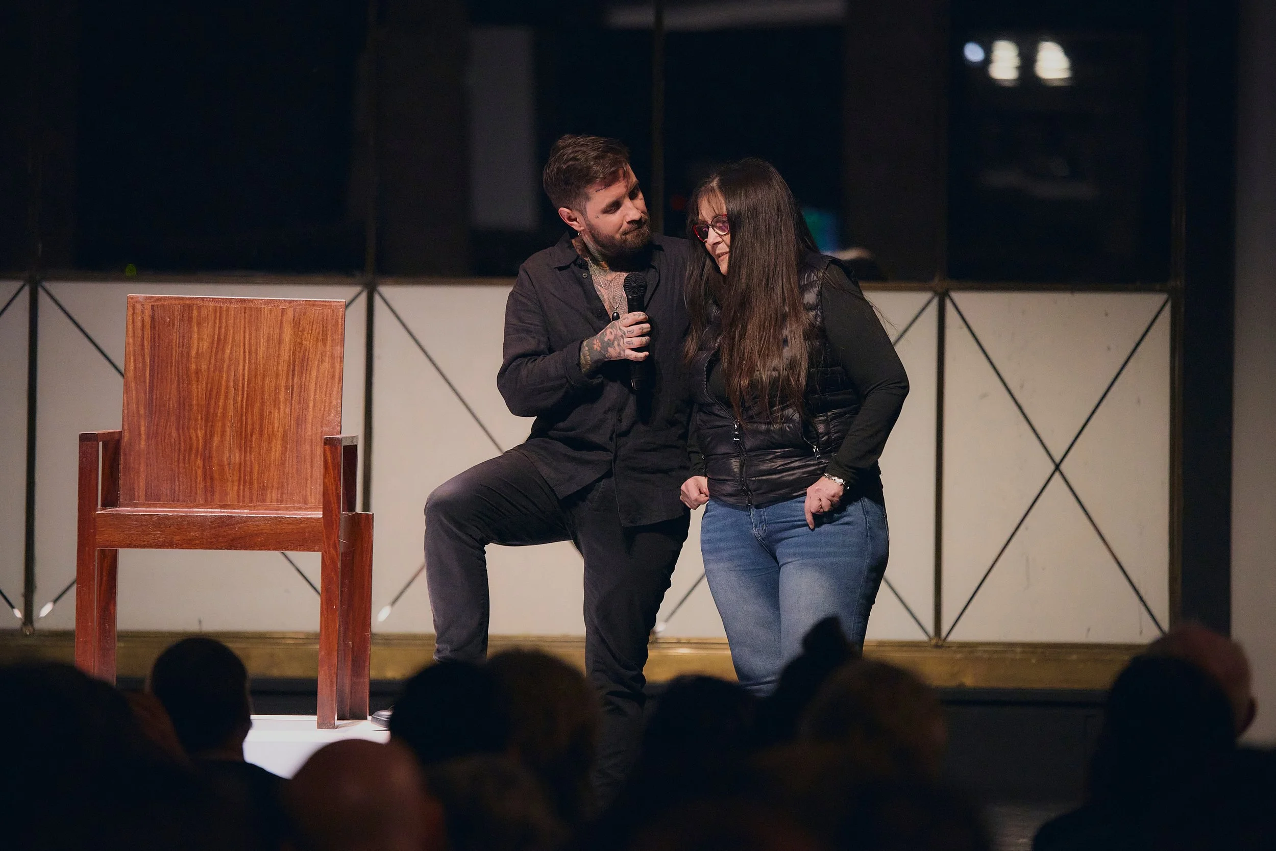 Madre e hijo se dan la mano treinta y siete años después. Se siente el silencio activo de los asistentes. Las personalidades de la cultura, sentadas en las primeras filas, quizá sean las que más llamen la atención de los medios, pero no son las más importantes. La sala está llena de las seguidoras fieles del artista, con las que lleva años compartiendo historias de abandono y violencia, que han viajado desde lejos para participar en esta comunión de cuerpos. Cuerpos que enmudecen de asombro y emoción. Se mantiene la respiración hasta el abrazo final de madre e hijo, un abrazo que rompe el silencio en aplausos.