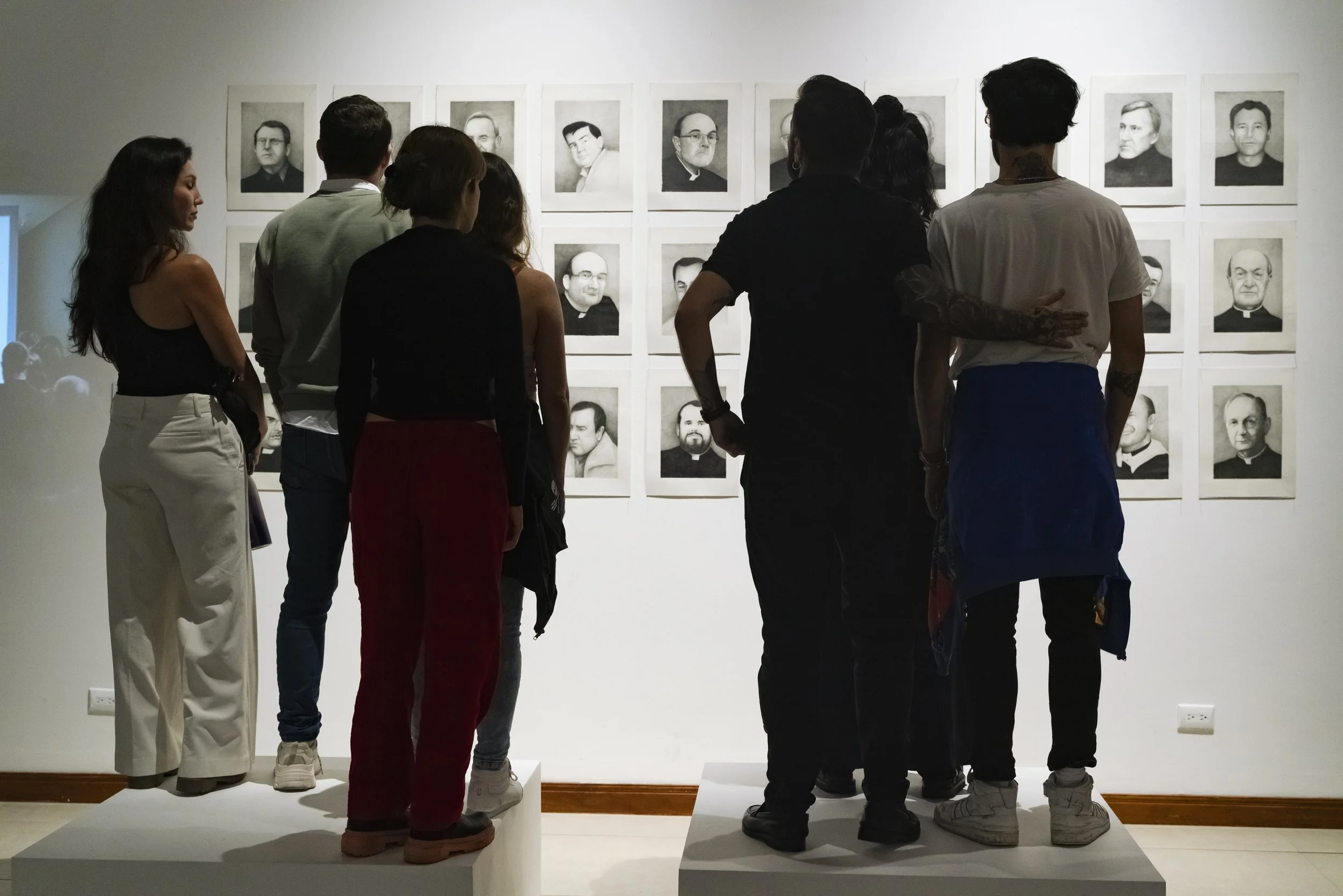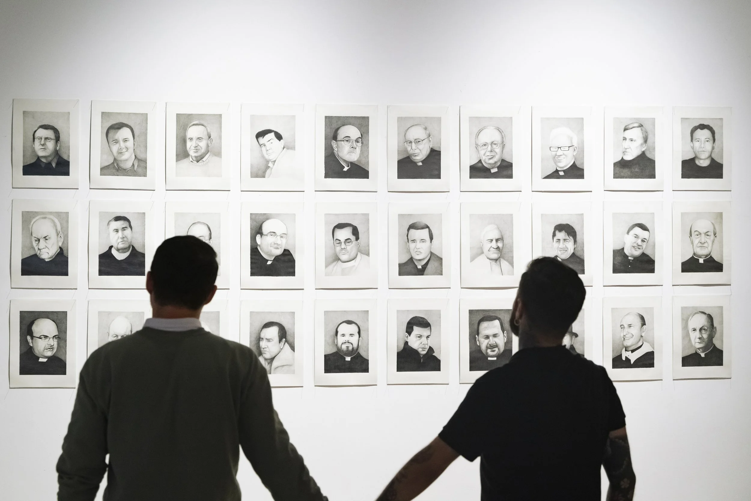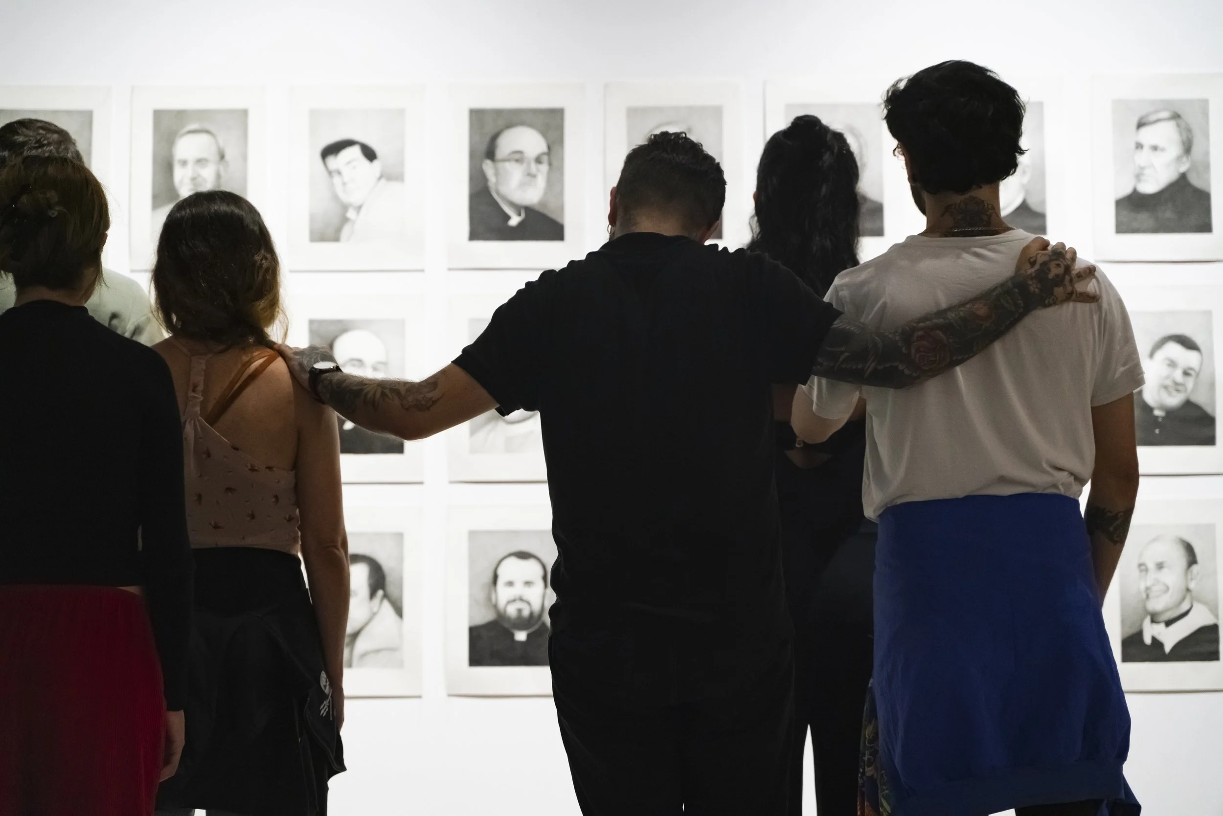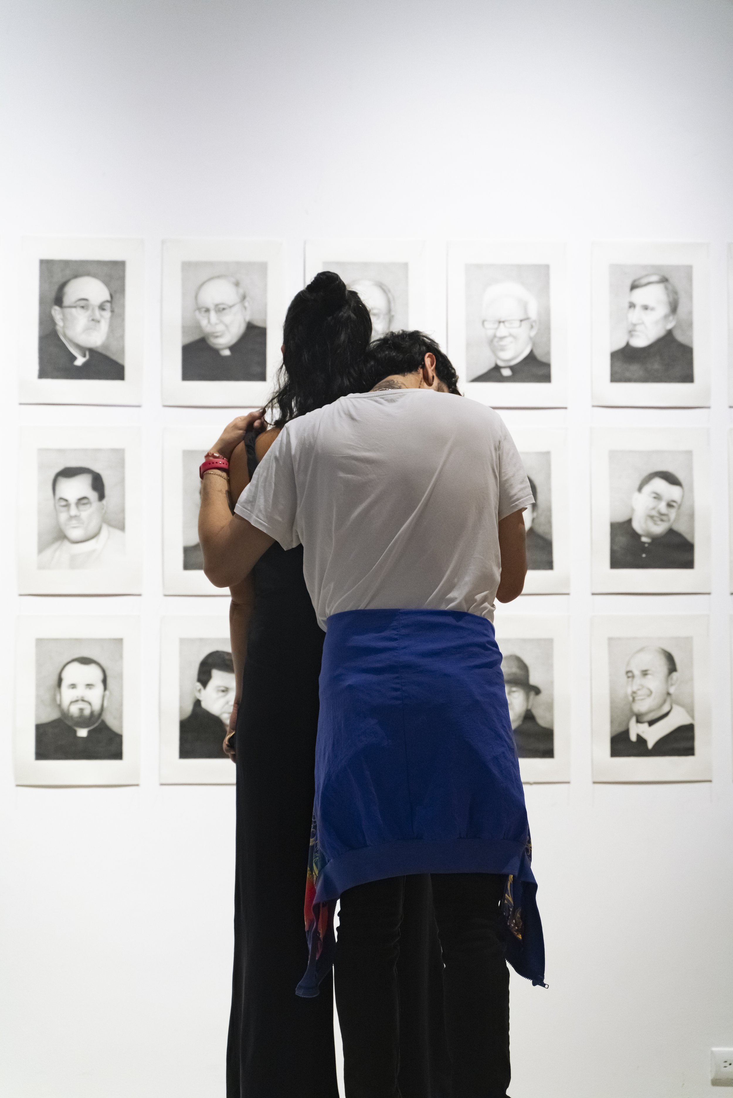 Obra pictórica, performativa y de denuncia creada por Abel Azcona entre los años 2023 y 2024 y que será expuesta por primera vez en agosto de 2024 en la Galería Nacional de Costa Rica en colaboración con MACRO Arte Contemporáneo en la ciudad de San José en Costa Rica. En la obra final podemos observar más de cincuenta retratos a grafito de cincuenta sacerdotes y exsacerdotes y diferentes personas vinculadas a la Iglesia Católica que han sido condenados en la última década por abuso sexual infantil. Algunos de ellos han sido expulsados por la Iglesia, en cambio otros, siguen protegidos por la institución. Esta pieza nace desde la necesidad de condena pública y como continuación de otras obras del artista donde denuncia la pederastia en el interior de la Iglesia Católica. El día de la exposición, diferentes víctimas de los sacerdotes condenados y retratados, activaran una performance en vivo narrando su testimonio, mirando a la cara del retrato de su abusador.