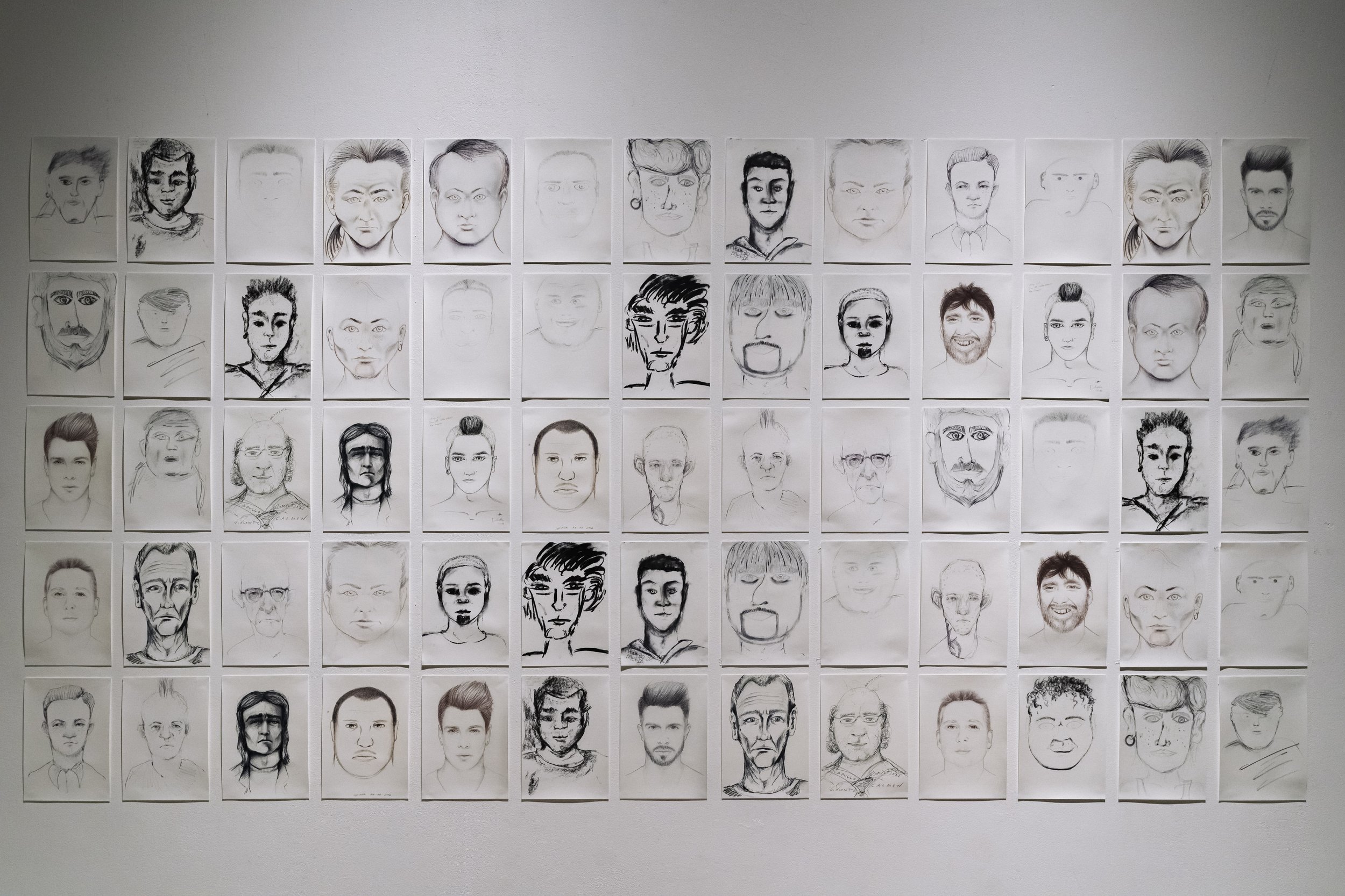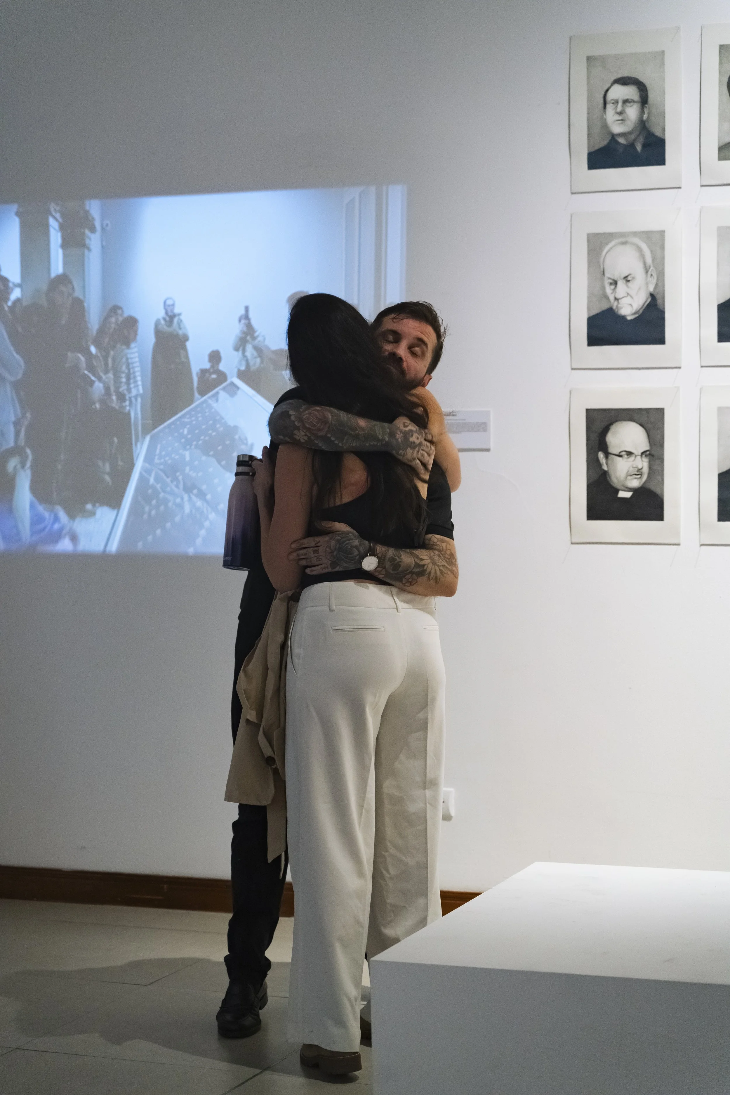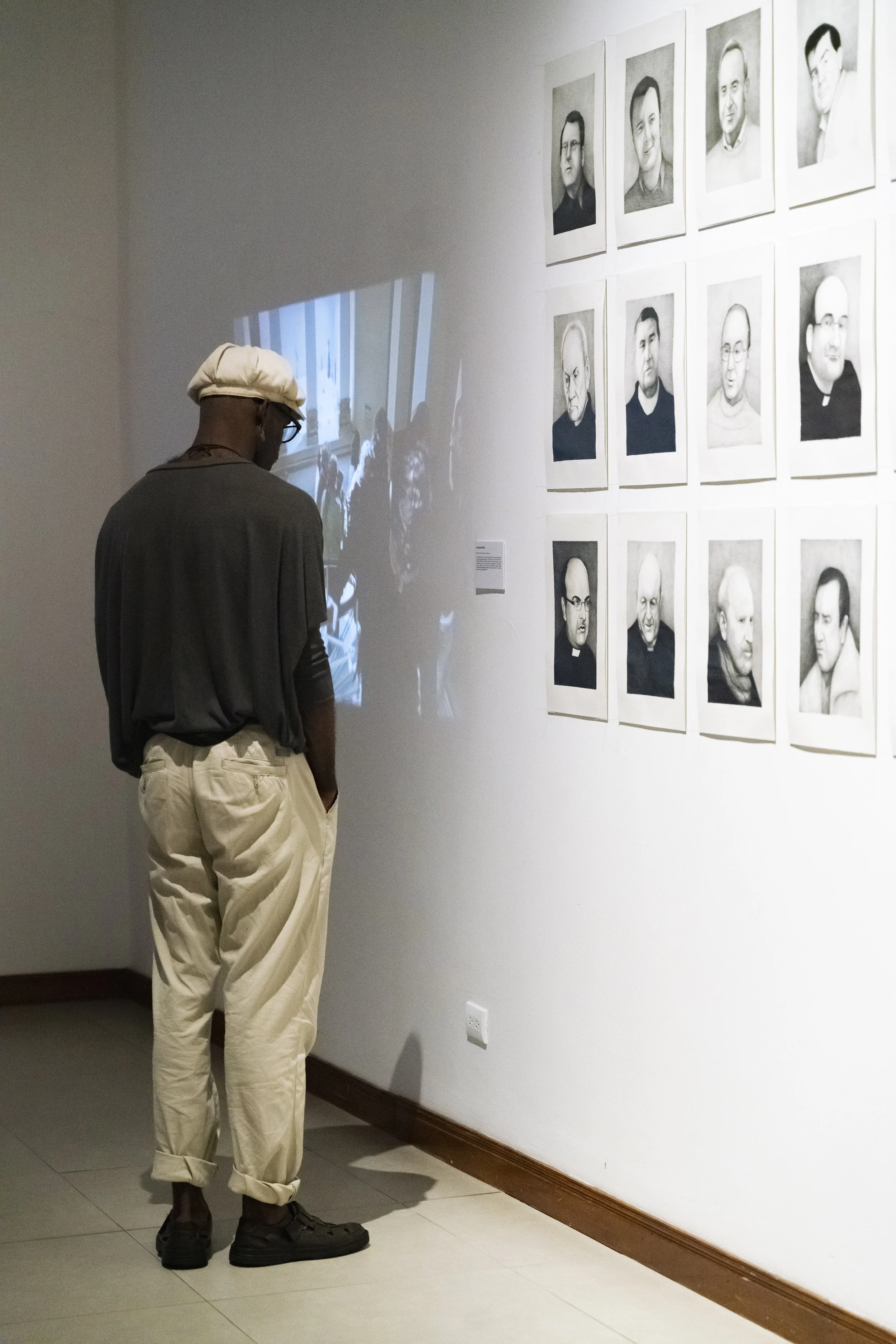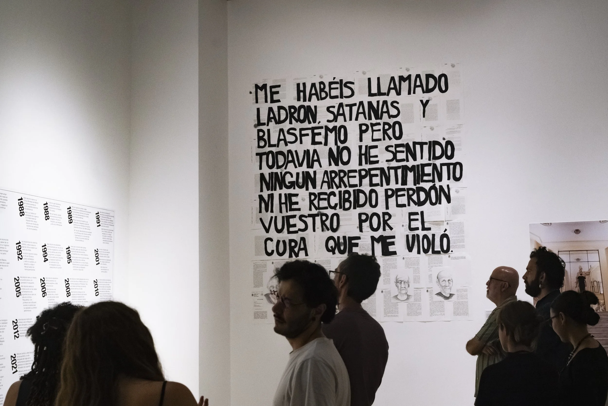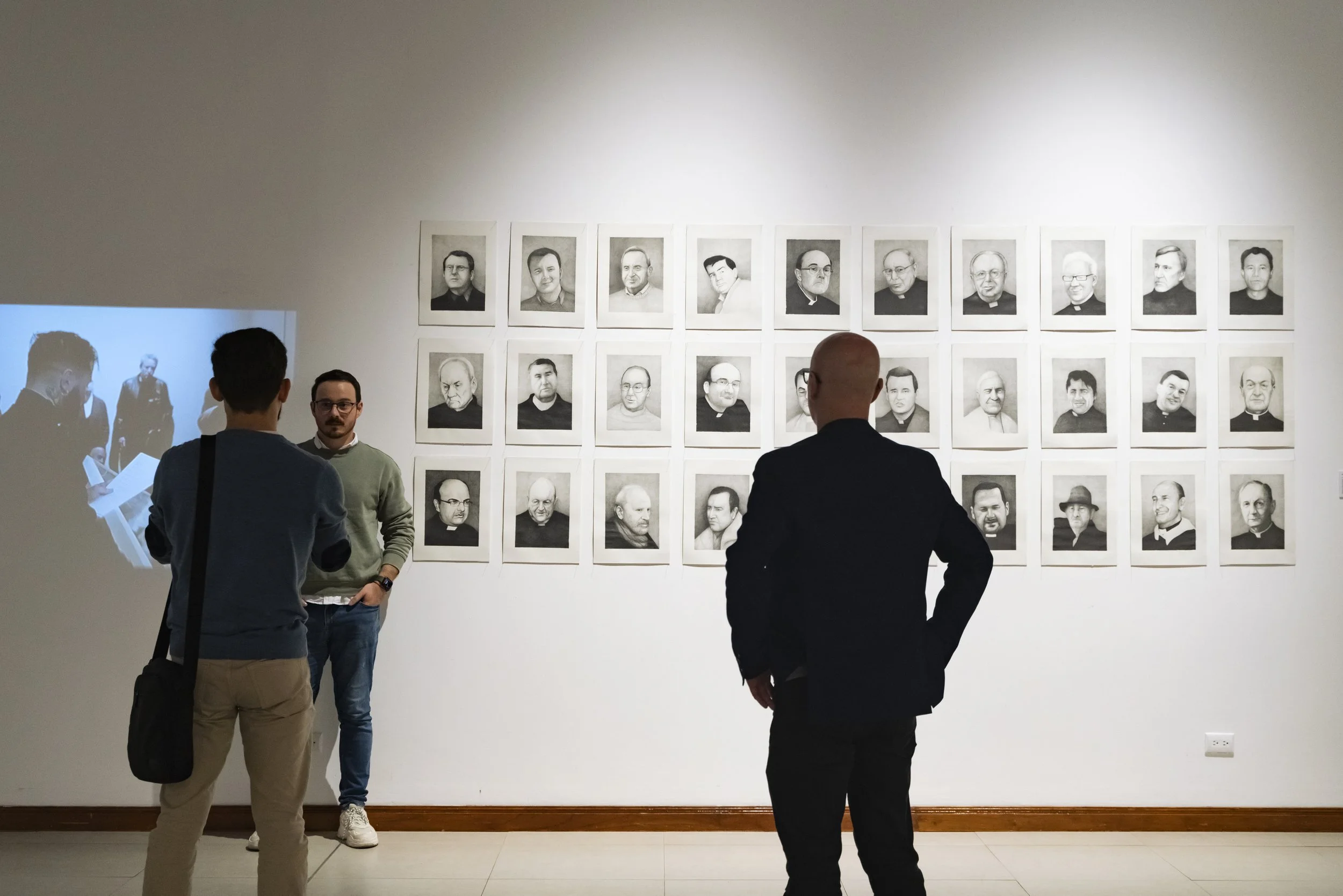 Obra pictórica, performativa y de denuncia creada por Abel Azcona entre los años 2023 y 2024 y que será expuesta por primera vez en agosto de 2024 en la Galería Nacional de Costa Rica en colaboración con MACRO Arte Contemporáneo en la ciudad de San José en Costa Rica. En la obra final podemos observar más de cincuenta retratos a grafito de cincuenta sacerdotes y exsacerdotes y diferentes personas vinculadas a la Iglesia Católica que han sido condenados en la última década por abuso sexual infantil. Algunos de ellos han sido expulsados por la Iglesia, en cambio otros, siguen protegidos por la institución. Esta pieza nace desde la necesidad de condena pública y como continuación de otras obras del artista donde denuncia la pederastia en el interior de la Iglesia Católica. El día de la exposición, diferentes víctimas de los sacerdotes condenados y retratados, activaran una performance en vivo narrando su testimonio, mirando a la cara del retrato de su abusador.
