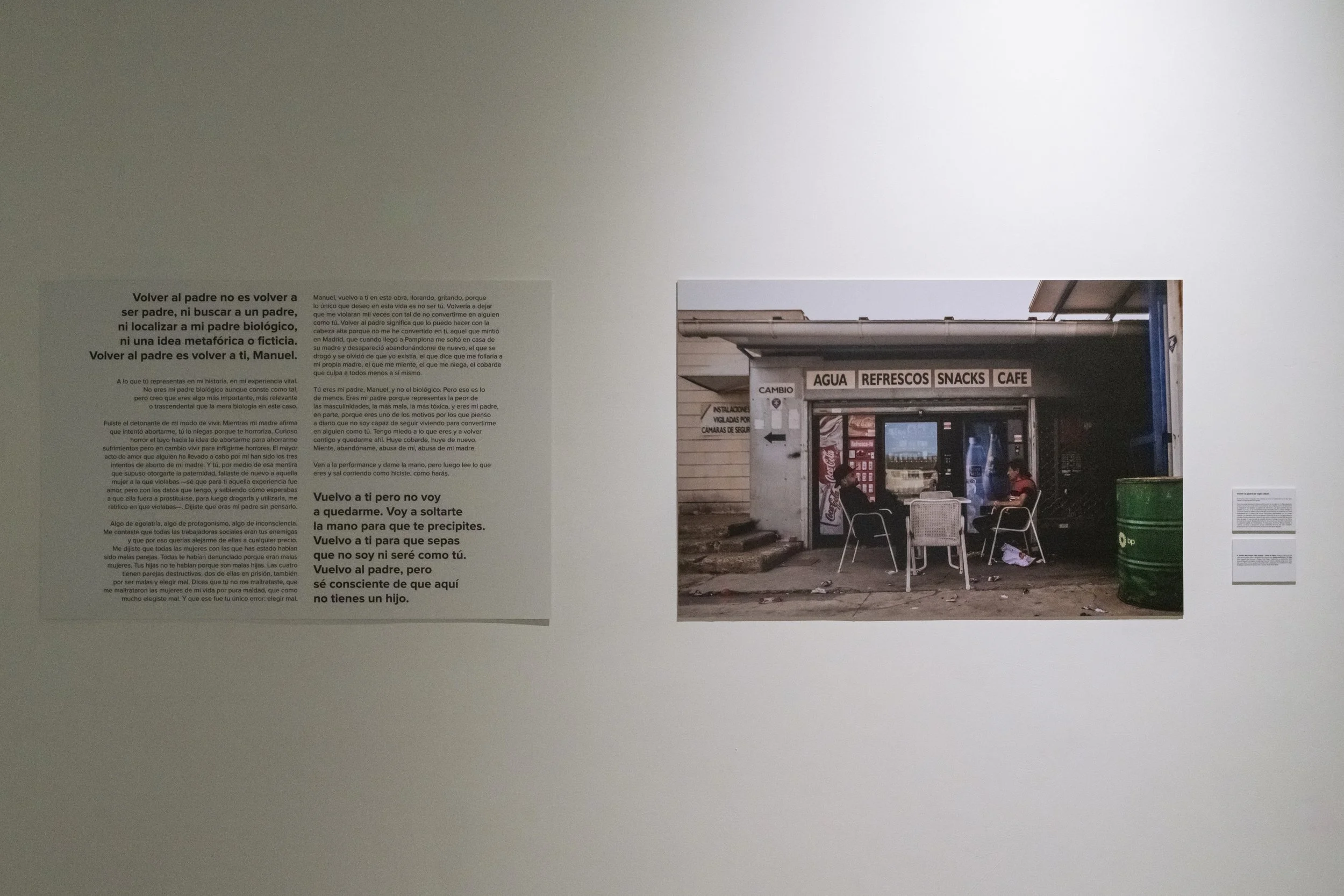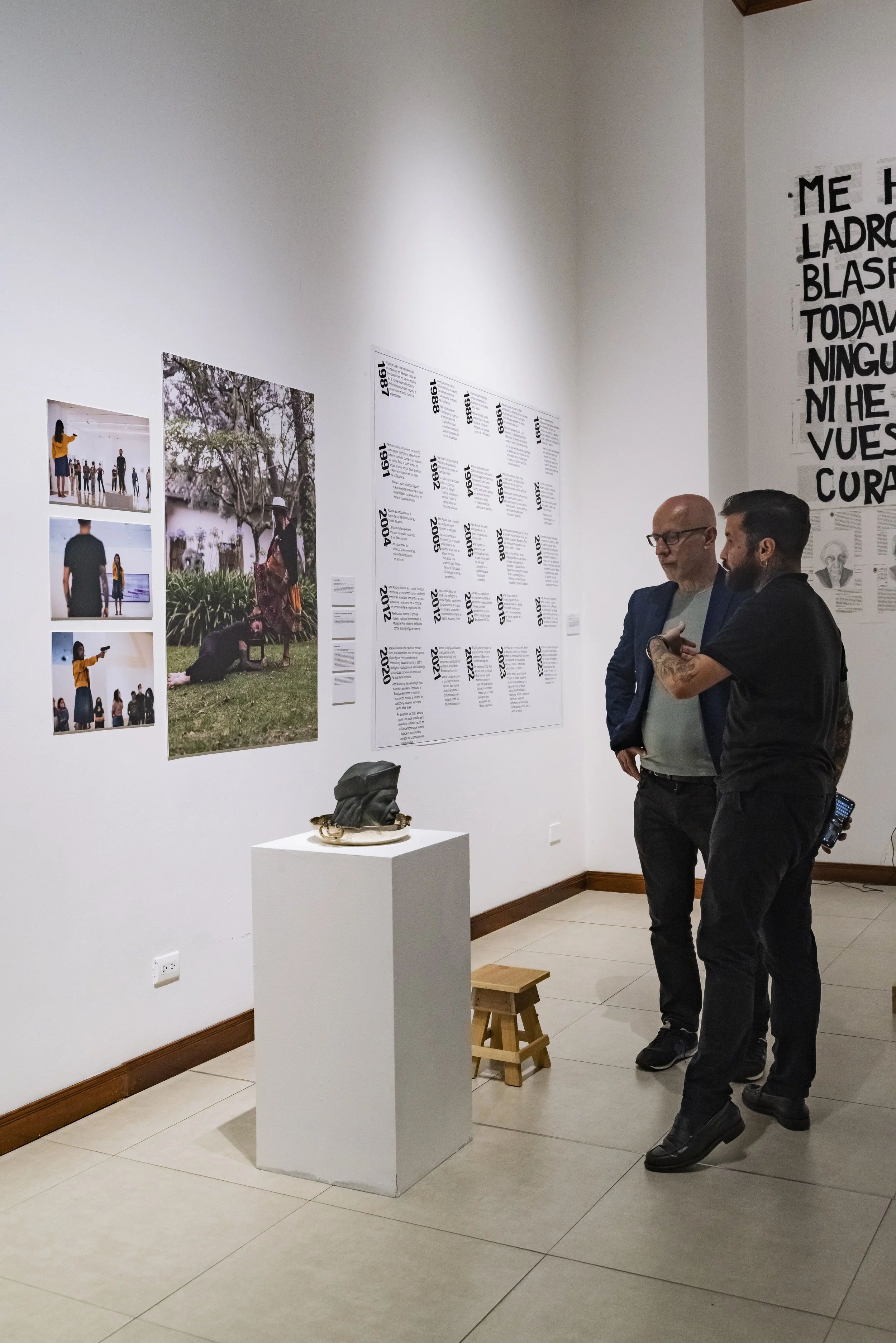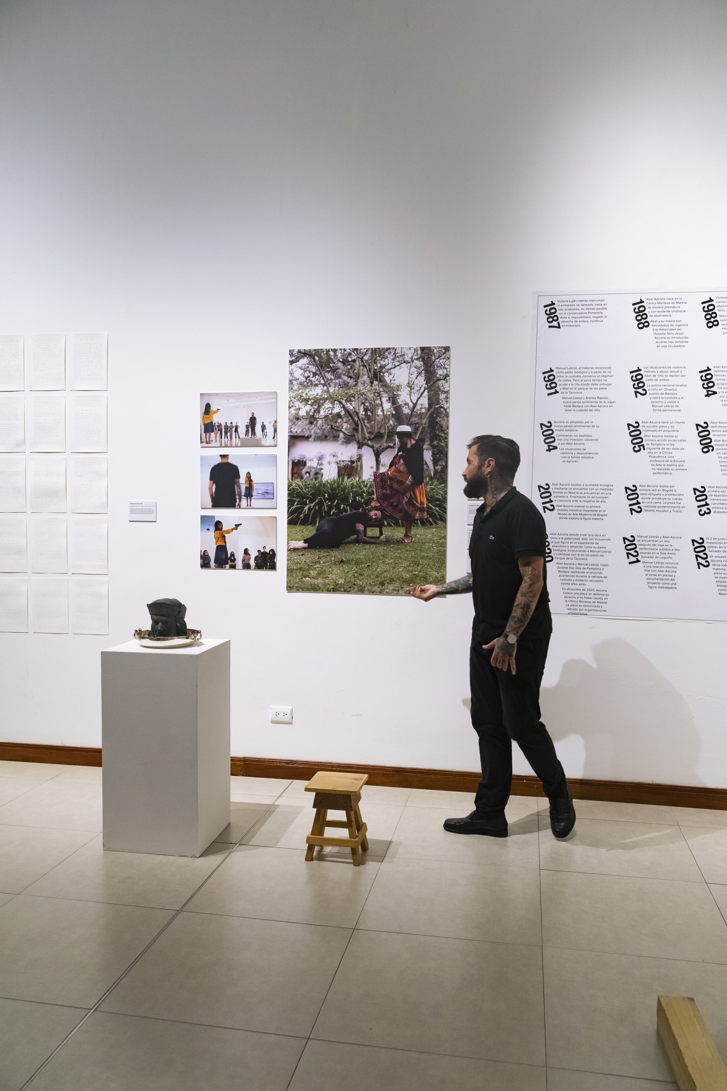 Obra performativa detonada en dos peanas en un encuentro de una hora de duración en la Sala Amós Salvador de Logroño con la figura paterna estipulada en su expediente de adopción y papeles de abandono: una figura paterna, que en realidad no lo es, al ser únicamente pareja esporádica de su madre biológica y conocerla cuando ya estaba embarazada del propio Azcona. También protagonista de los abusos, el secuestro y los maltratos a Azcona.
