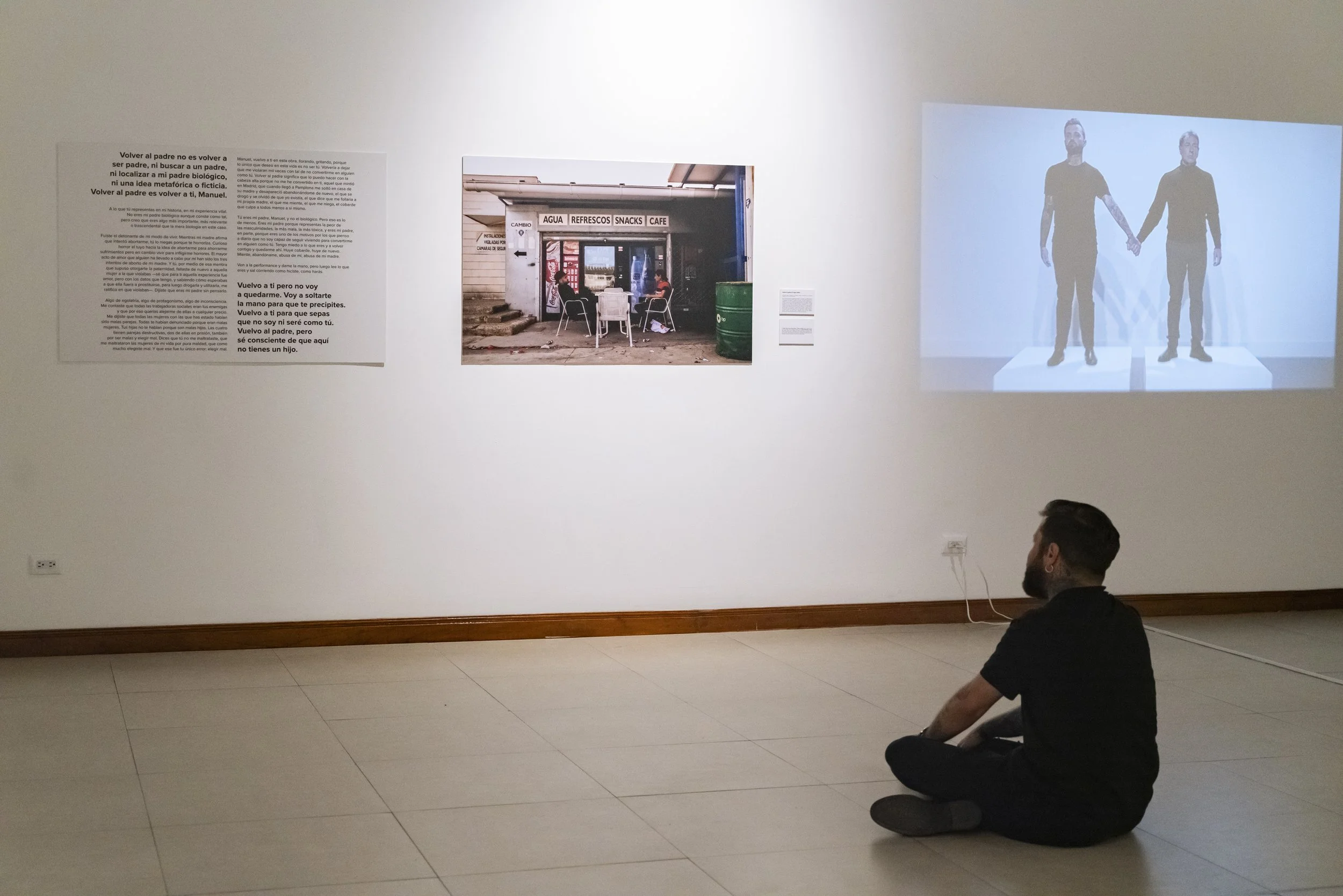 Tú eres mi padre, Manuel, y no el biológico. Pero eso es lo de menos. Eres mi padre porque representas la peor de las masculinidades, la más mala, la más tóxica, y eres mi padre, en parte, porque eres uno de los motivos por los que pienso a diario que no soy capaz de seguir viviendo para convertirme en alguien como tú. Tengo miedo a lo que eres y a volver contigo y quedarme ahí. Huye cobarde, huye de nuevo. Miente, abandóname, abusa de mí, abusa de mi madre. Ven a la performance y dame la mano, pero luego lee lo que eres y sal corriendo cómo hiciste, como harás.