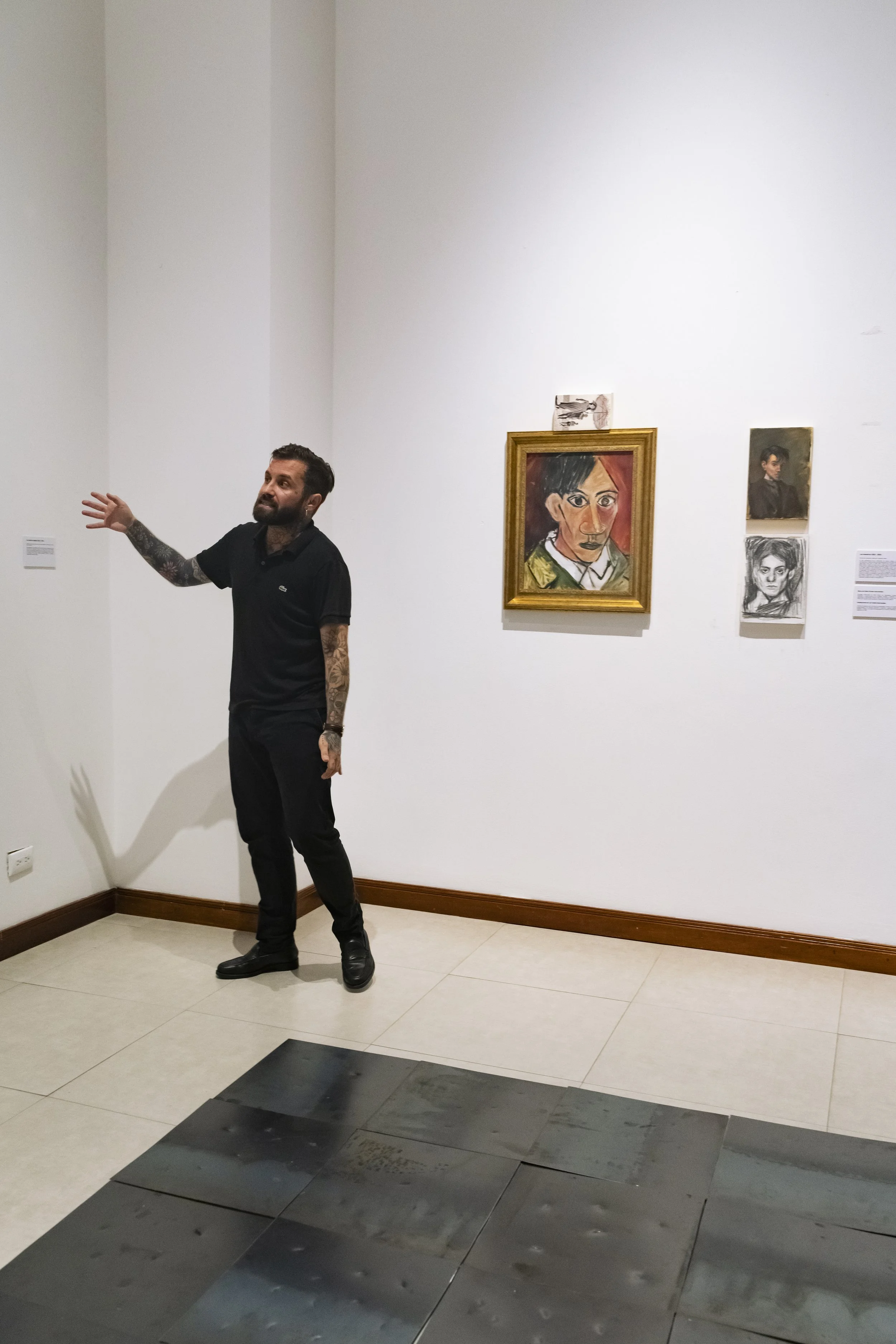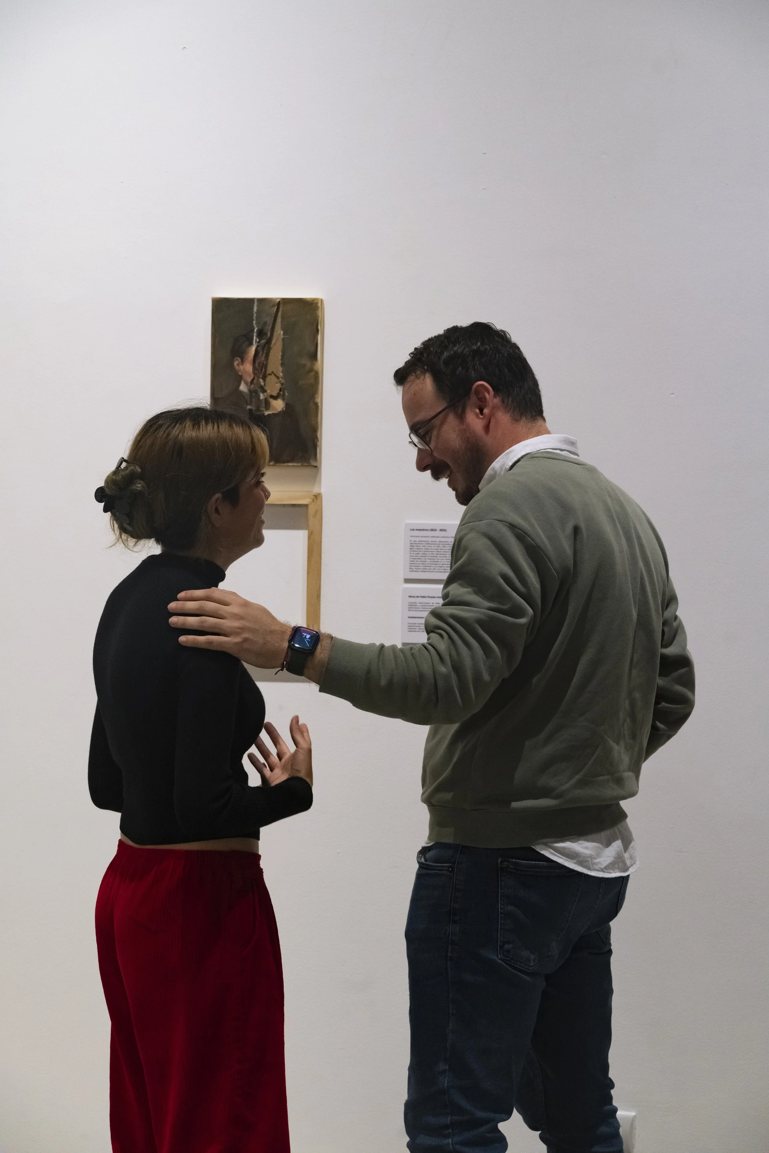 The piece Los Maestros on the day of the exhibition's opening. / La pieza de Los Maestros el día de la inauguración de la muestra.
