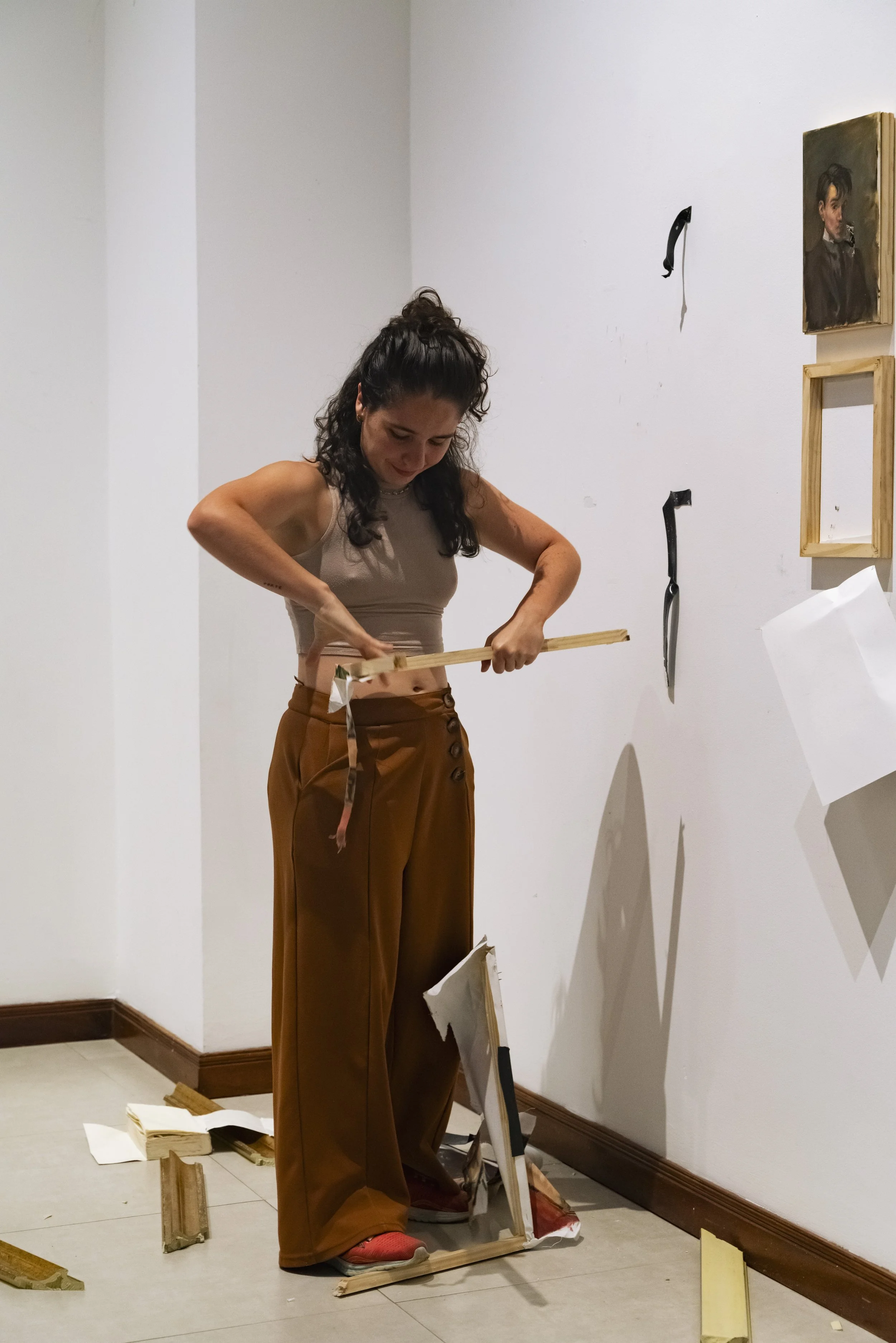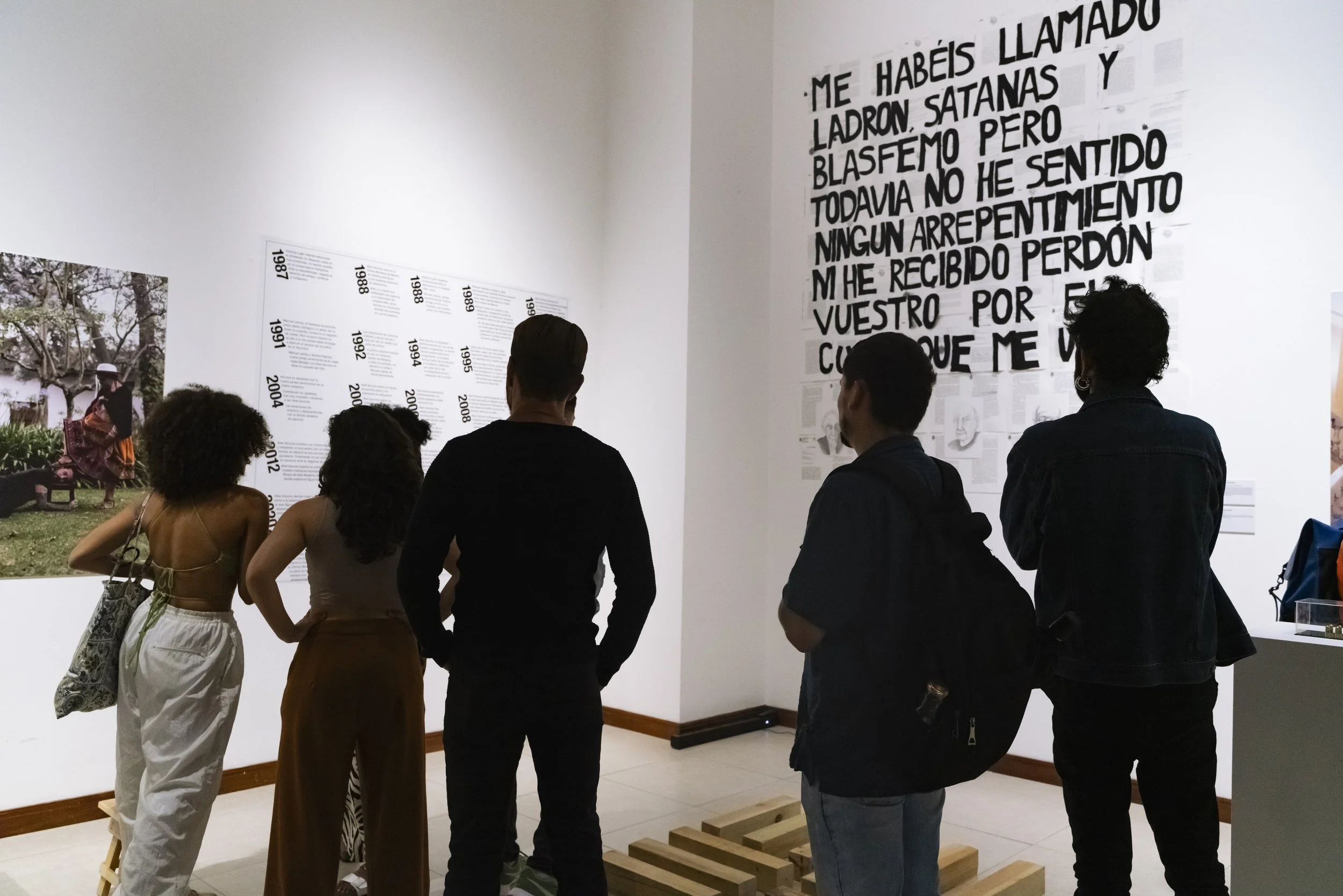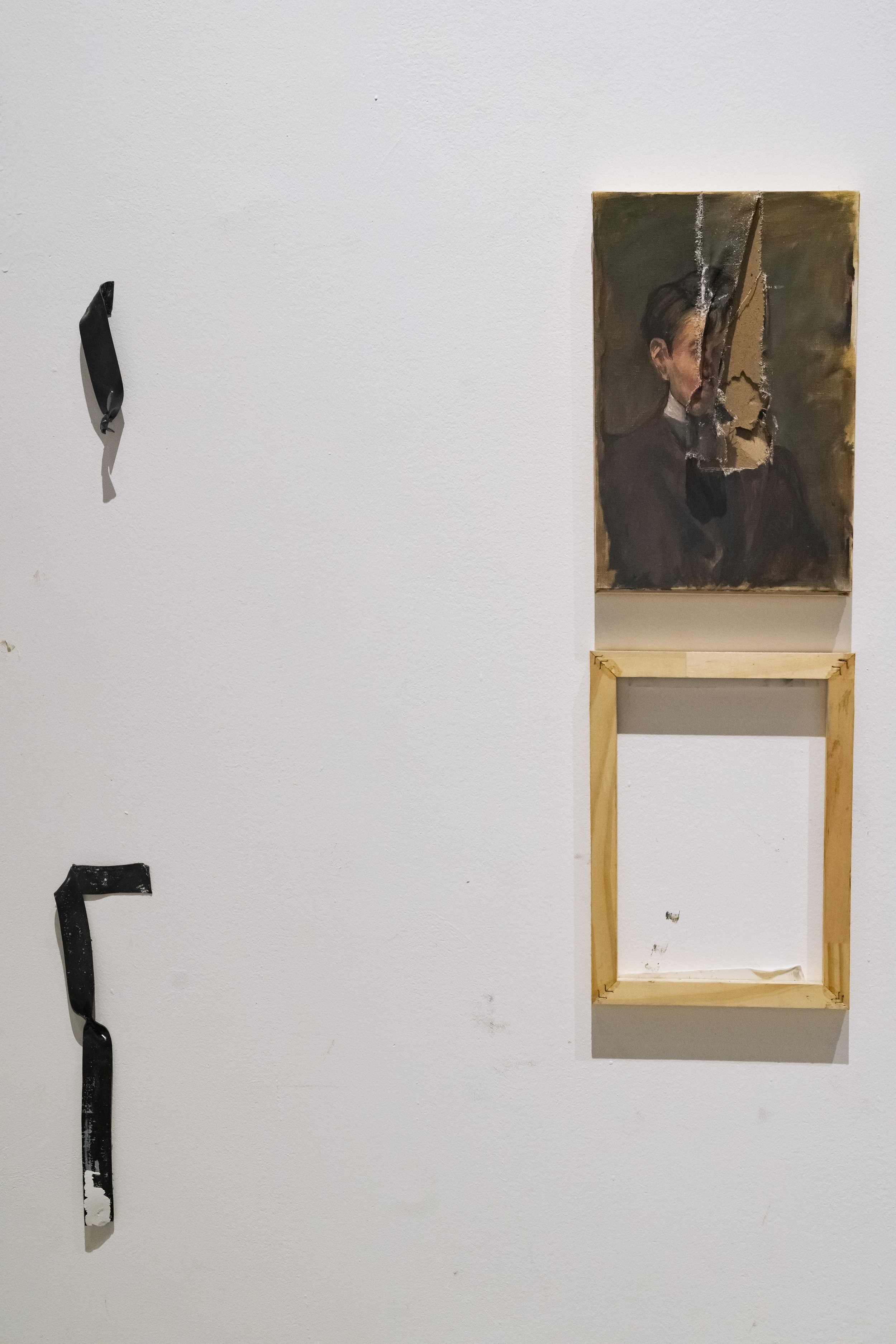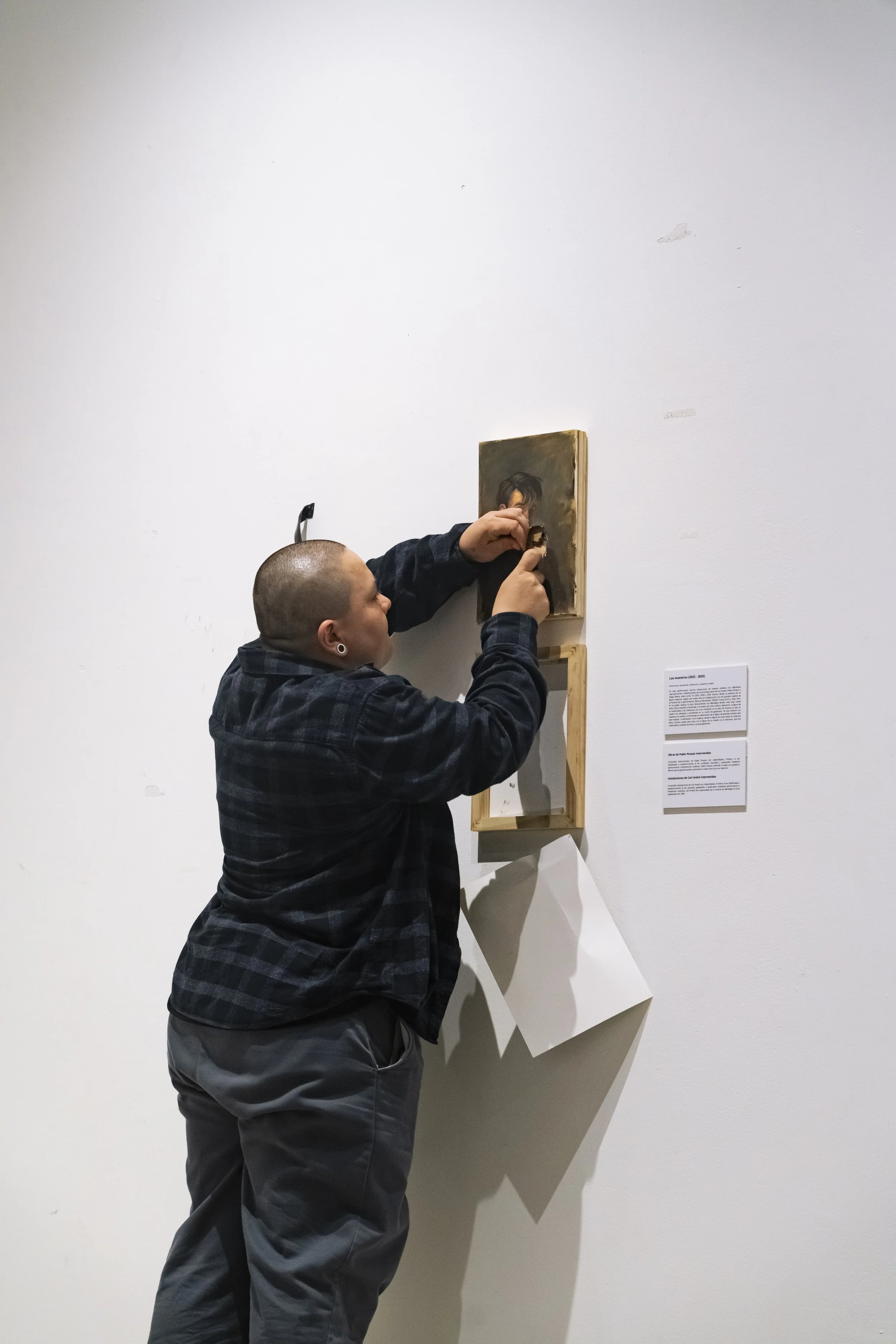 Killing the Father is an exhibition, a performance, and a violent act. This exhibit arises as a recap and conclusion of all the artist’s works dealing with fatherhood, masculinity, sexual abuse, violence, colonialism, and religion. In April 2025, Azcona will finally meet his biological mother, and before meeting her in person after twenty years of working through his abandonment and her absence, Azcona recapitulates. In this summary, he presents all his works on fatherhood, where he speaks of his fathers and sexual abusers. Men who were prostitution clients and abusers of both his mother and himself after he was born. The exhibition is a broad collection of works centered on the father figure and other figures of power. It serves as closure for the artist in addressing the abuses he suffered, the mistreatment from father figures, the compulsory religion from his Catholic adoption, and the two privileged forces behind his own experience: colonialism and the art world. Azcona brings an end to these themes in an autobiographical exhibition that recounts all the violences he endured and how the artist faces them to burn them, destroy them, confront them, and finally, say goodbye.
