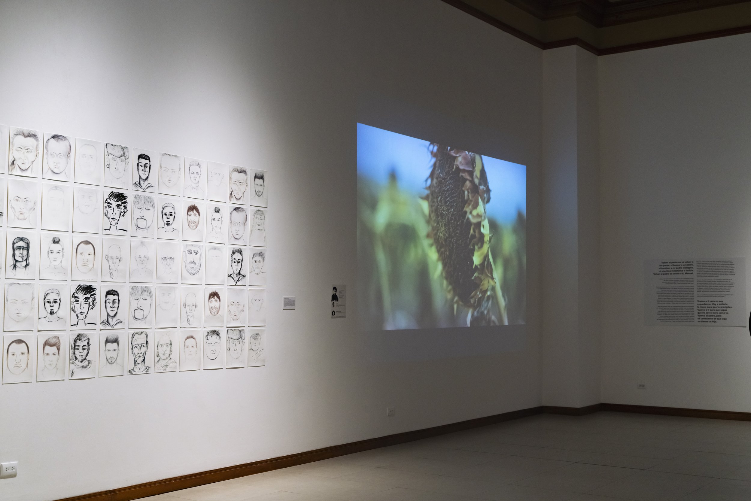 Performance, instalación, objeto, testimonios, video y fotografía. Selección de setenta y cinco padres. Obra artística diseñada y desarrollada durante los años 2016 y 2021. Un proyecto de arte procesual mediante la instalación, el dibujo, la fotografía, el video y la performance, que el 26 de Junio de 2016 por primera vez es performatizado por nueve mujeres vinculadas al mundo de la prostitución y nueve dibujantes formados especialmente para la pieza, en Fisionomía y Reconocimiento Facial. Ciento veinte retratos como resultado de un proceso de más de dos años de duración en el que más de cien mujeres, en ejercicio de la prostitución en el pasado, de diez nacionalidades diferentes se han sentado, literalmente,en una mesa interminable instalada en diferentes galerías y museos de España y Latinoamérica. Una pieza que invita al espectador a reflexionar sobre la paternidad, en el caso de Azcona, un padre desconocido y una madre en ejercicio de la prostitución.