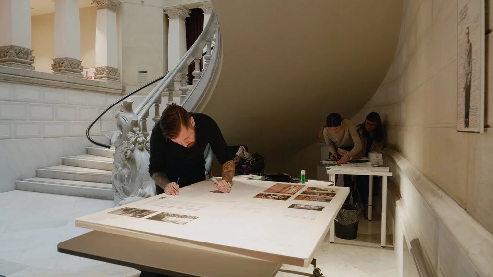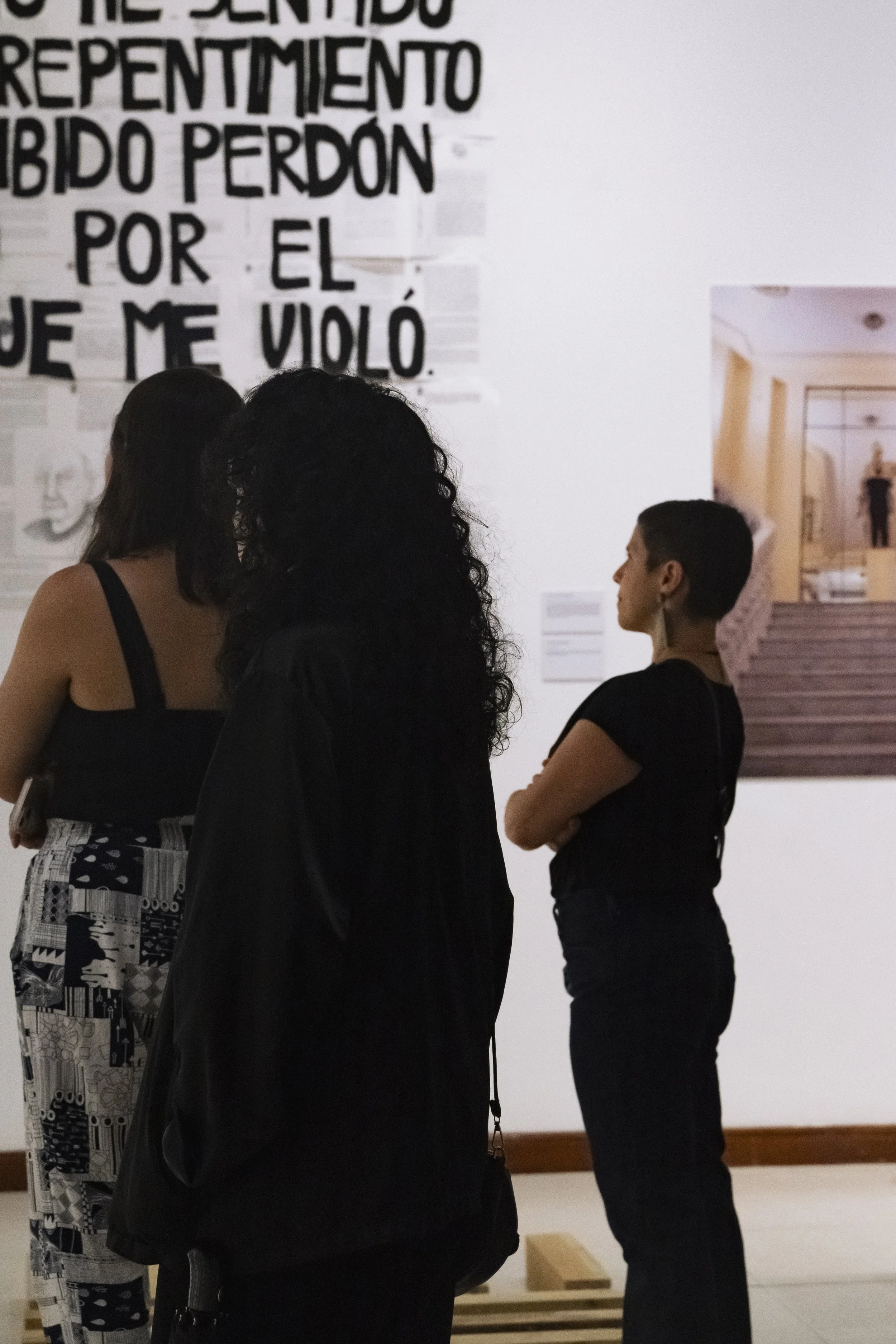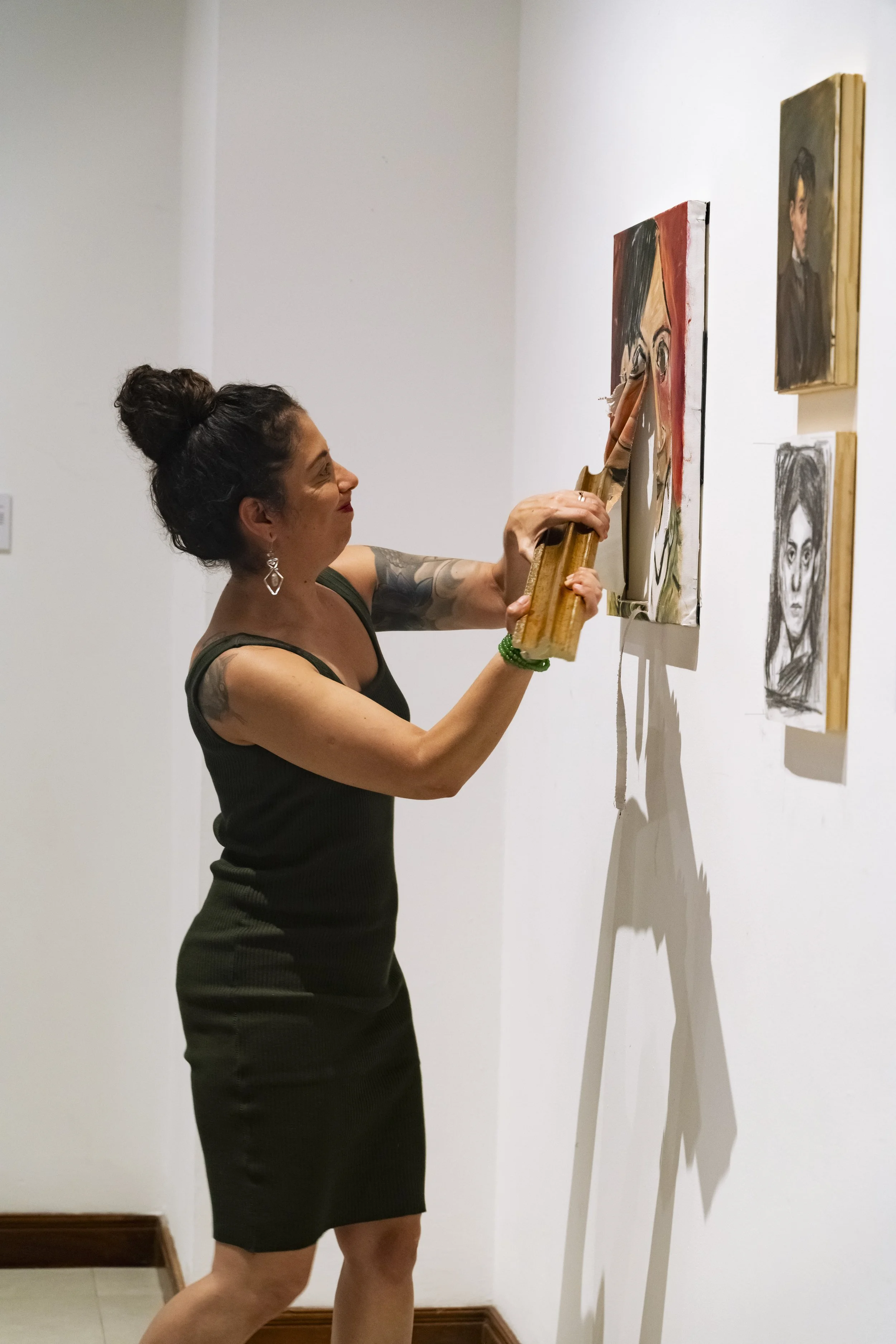 The piece Los Maestros after being intervened by several women survivors of patriarchal violence. / La pieza de Los Maestros tras ser intervenida por varias mujeres supervivientes de violencia patriarcal.