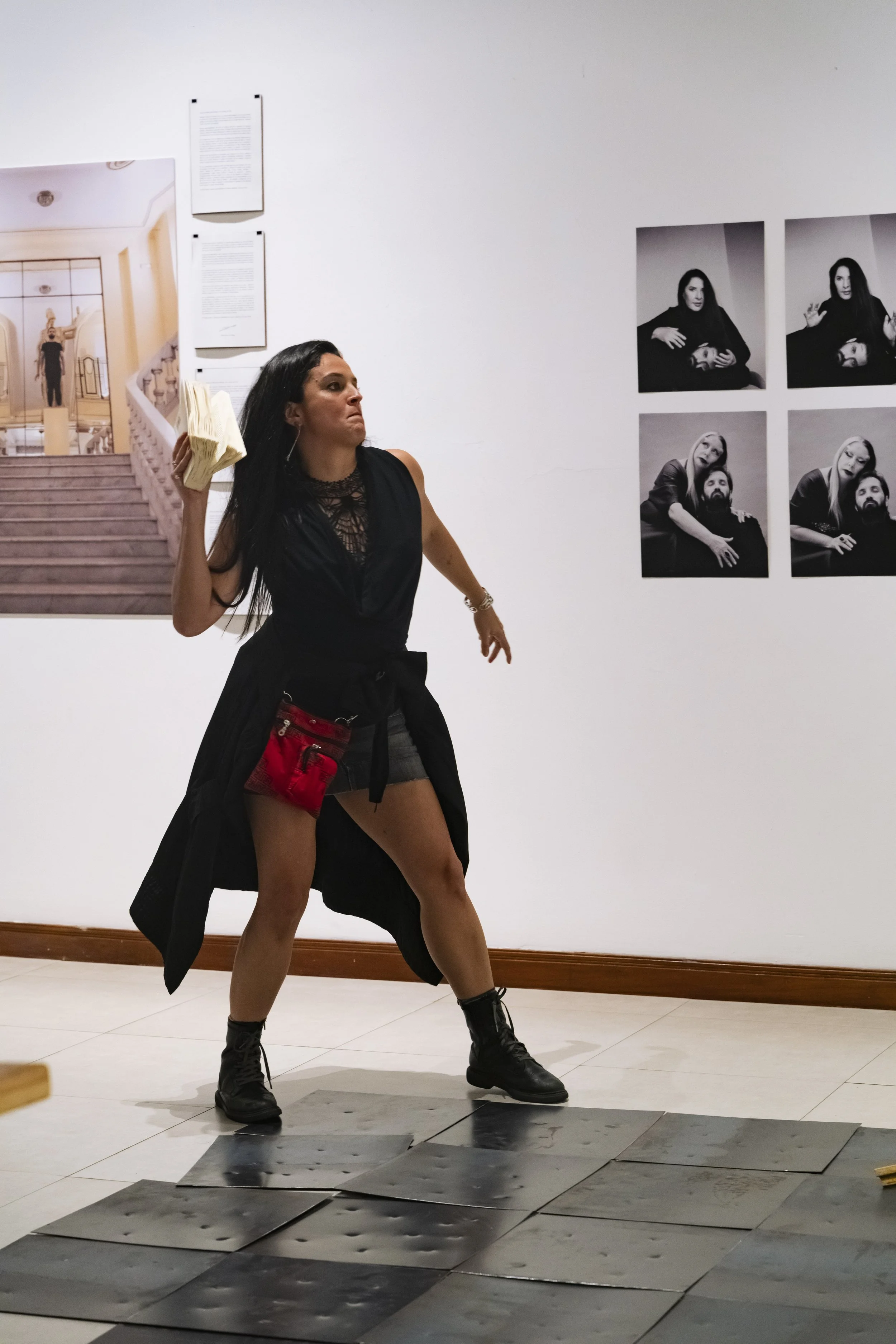 Performance, papel, hilo negro y objeto.