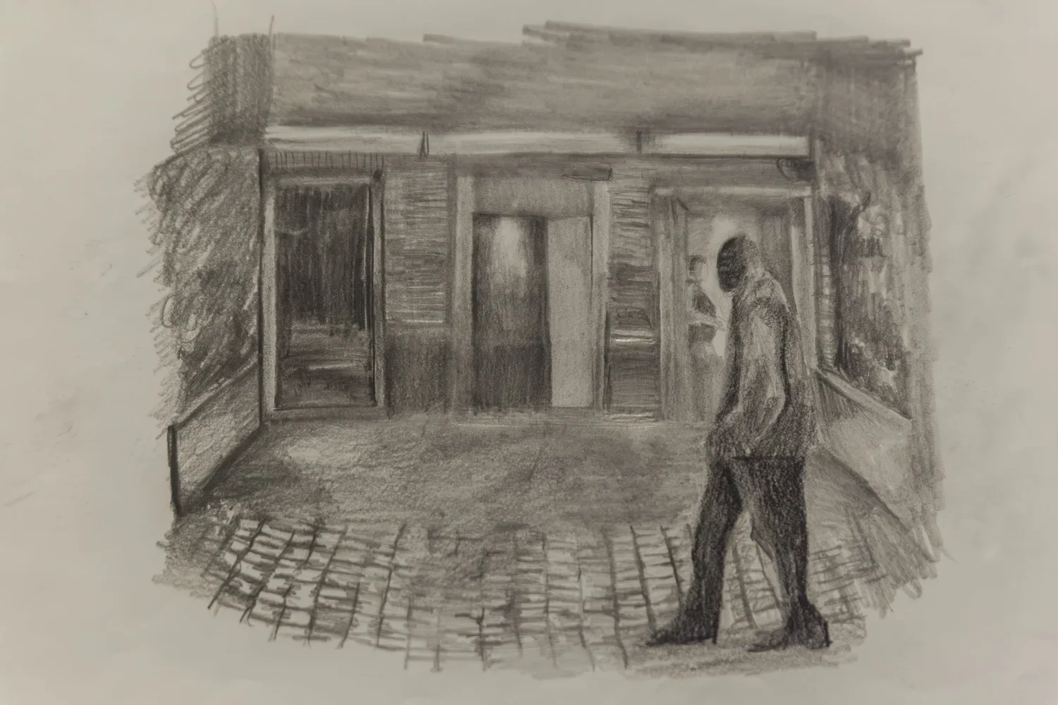 Abel Azcona sits for hours in front of brothels in Mexico, Bogotá, or Madrid. During the wait, he draws the men who enter the place. This new work by the artist is an unfruitful search for the father who impregnated his prostituted mother and disappeared among more than a thousand men.