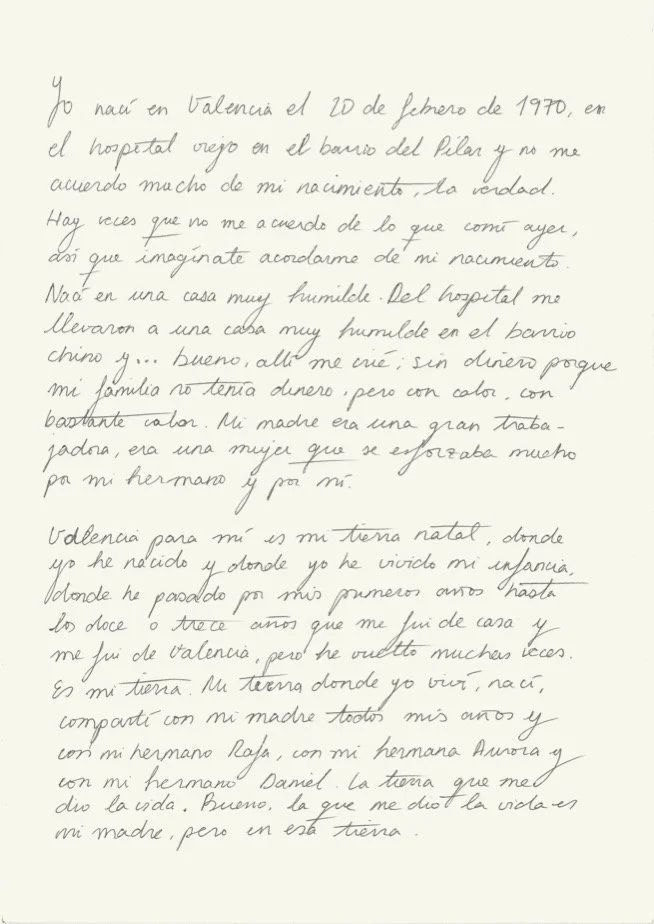After thirty-five years of searching for his mother, attempting to make his own story intelligible, artist Abel Azcona received a call a few months ago from a woman claiming to be his biological mother. Since then, a DNA test, messages, calls, questions, and answers have taken place. In "Born Without a Mother," Abel Azcona will be able to see and hear some of these responses from Isabel, his biological mother, accompanied by the attendees, as well as take a further step towards approaching his mother while rehearsing the final reunion that will take place at the end of the year.