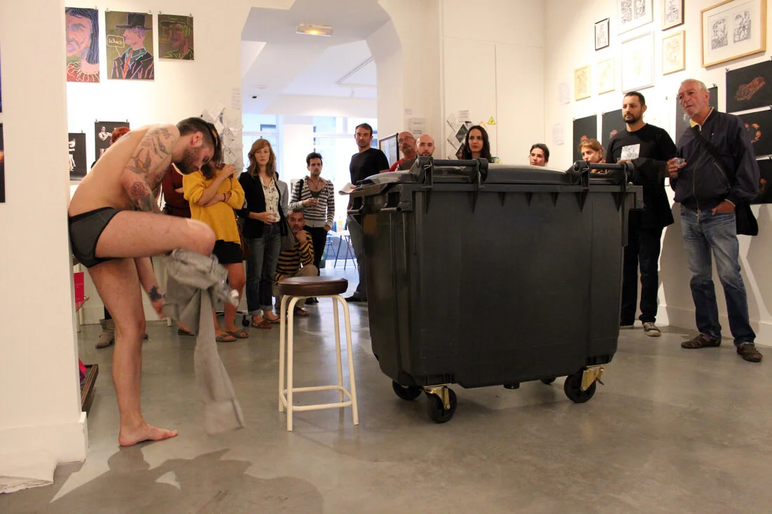 The first one, without a doubt, would have to be a reflection on art, because I think that for you and for me, seeing a garbage container in the center of the Pentes Gallery must unquestionably make us think about whether what we see is or is not art. However - neither this text nor the performance - are here to give you an answer; Thus, you will have to be the one to draw up your own conclusions, and guided by the different emotions, thoughts and sensations that Azcona's work has awakened in each one, reach a definitive judgment about its validity and relevance.