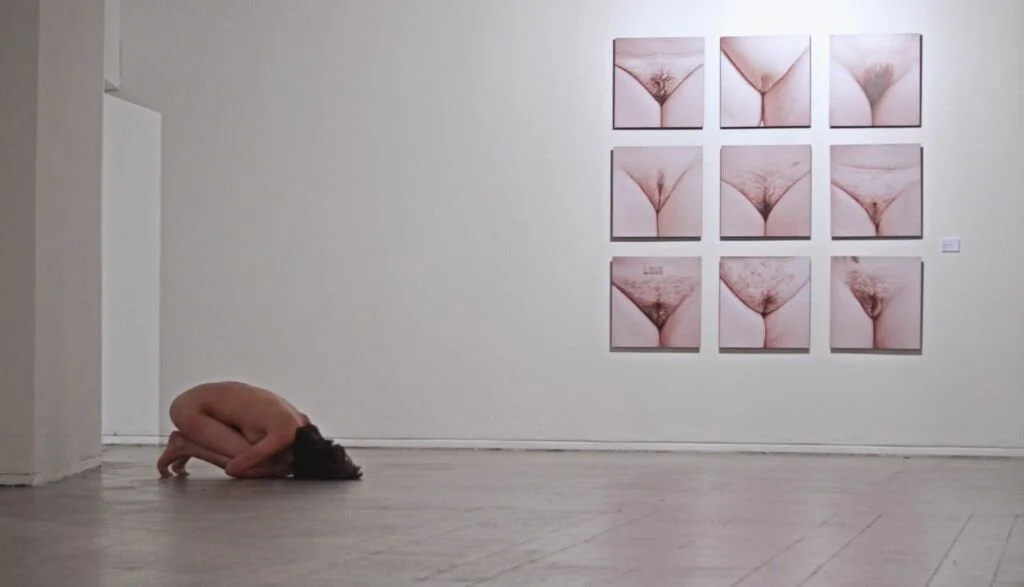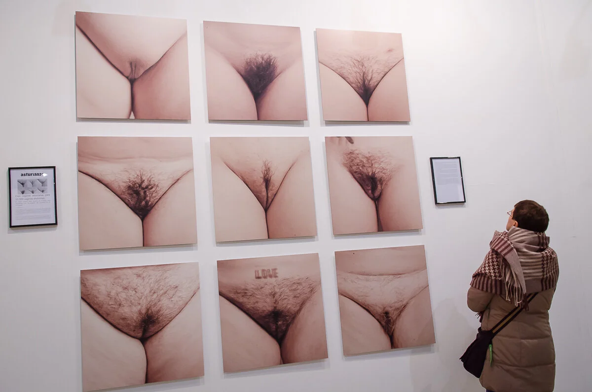 Eleven thousand one hundred and twenty-three photographs of vulvas and vaginas photographed in twenty-seven countries of the world. The capitals of countries like Colombia, Mexico, Spain, Argentina, the United States or Guatemala opened galleries and museums with processes where we could meet dozens of women at the doorstep waiting to be photographed in the inside. For more than a year, the action was developed, every week through a call. Later they were exposed together with texts of feminist and empowerment content. The artist carried put different performances with results created from the original photographs. Conceptually, the term anonymous was important to Azcona, due to the anonymity of his own biological mother, when she abandoned him at birth.
