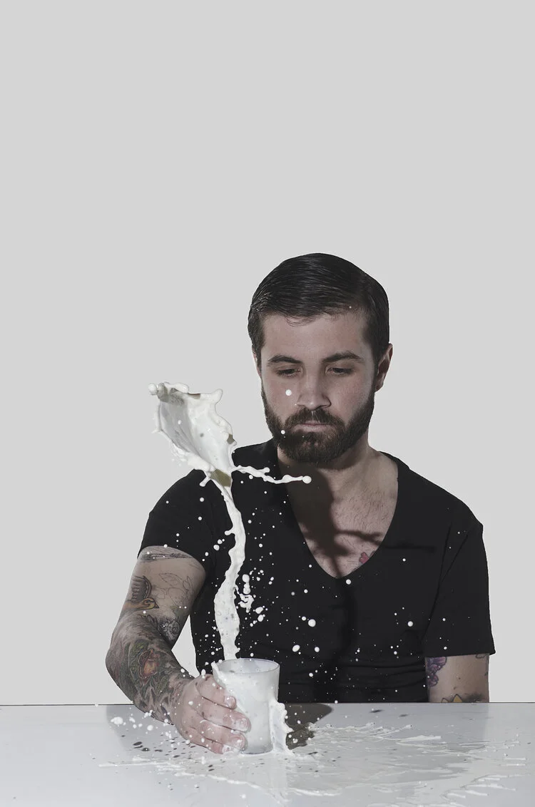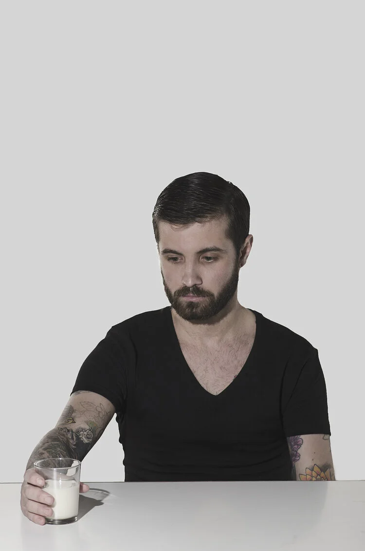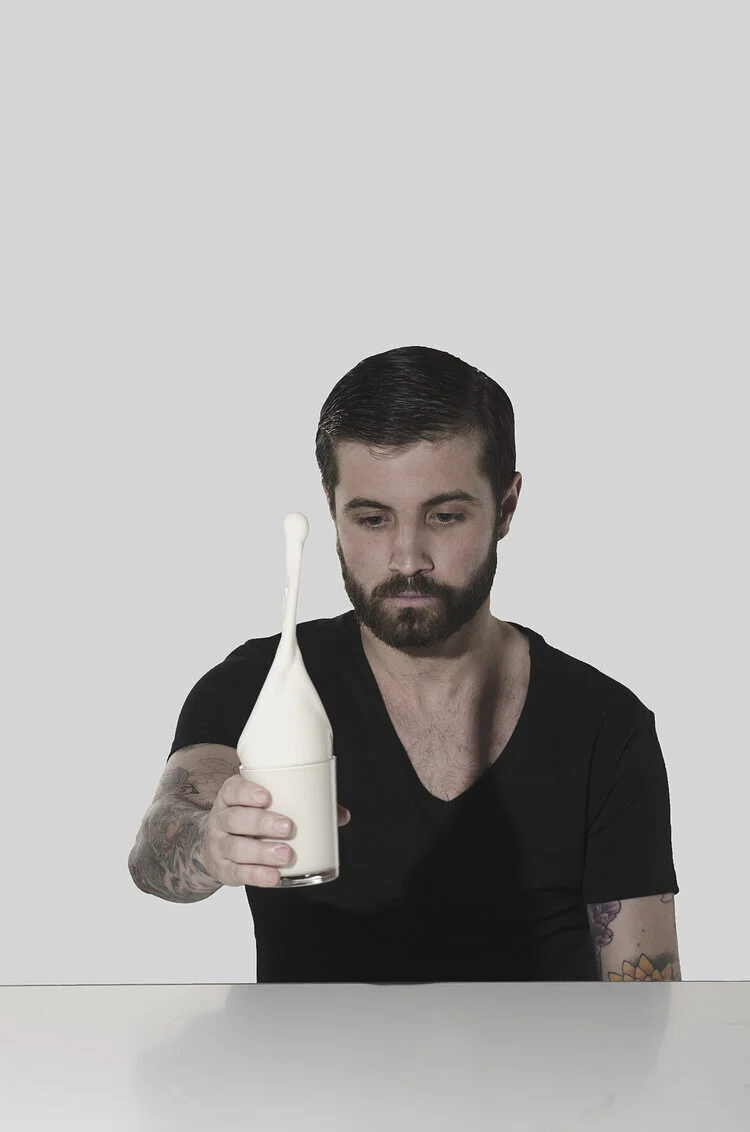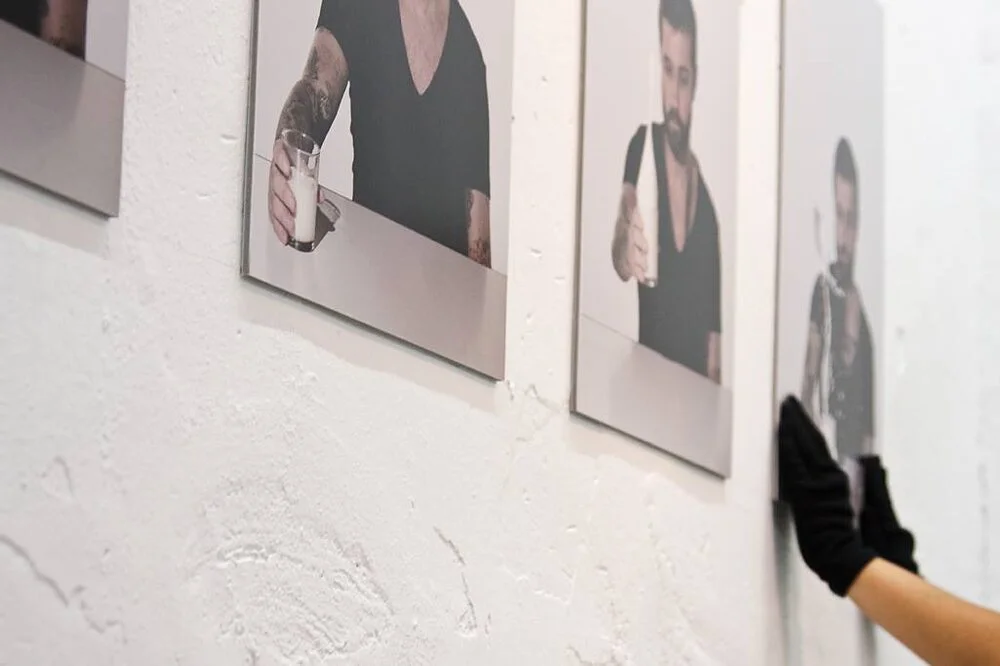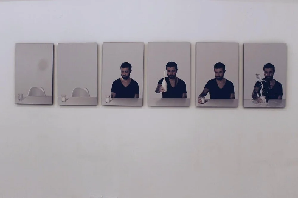 A language as traditional as photography is used, however, when exploring other formats such as installation, the work questions the use of language and its limits, urging the visitor to consider what there is left when the language of tradition ends. Breastfeeding is a symbol of union between mother and child, but in Azcona's life experience, the bond is broken since the first day of life. In the process of research prior to the work, the artist fed for days only on breast milk donated by lactating women. In the photographic performative process we can observe a dialogue between the artist and the liquid food donated by a mother with the same name as his own: Victoria.