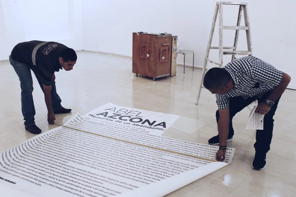 Los procesos de Abel Azcona constituyen una investigación teórica y práctica de naturaleza autobiográfica, en la que siempre ha desarrollado escenarios relacionados con la gestación, el vínculo, el abuso, el abandono, la prostitución, la maternidad y la discriminación. Permitiéndole comprender sus propias experiencias y, en muchas ocasiones, las de quienes participan en sus acciones colectivas, en donde emplea el cuerpo como herramienta de resistencia y catarsis que lo confrontan con sus miedos, ansiedades, tristezas, trastornos y deseos, entre otros estados mentales y corporales del ser humano, involucrando en sus actos vivenciales a otros que también desean enfrentarse a sus demonios, encararlos y, así, identificarlos para tratar de vencerlos. Es imposible hablar de su obra en singular, con cada intervención hay también nuevas personas, contextos y objetivos que crean procesos únicos, pero con la misma intención: generar espacios de confrontación, duelo y catarsis mediante actos artísticos y plásticos colectivos que partan de la realidad y problemáticas de quienes participan en ellos.